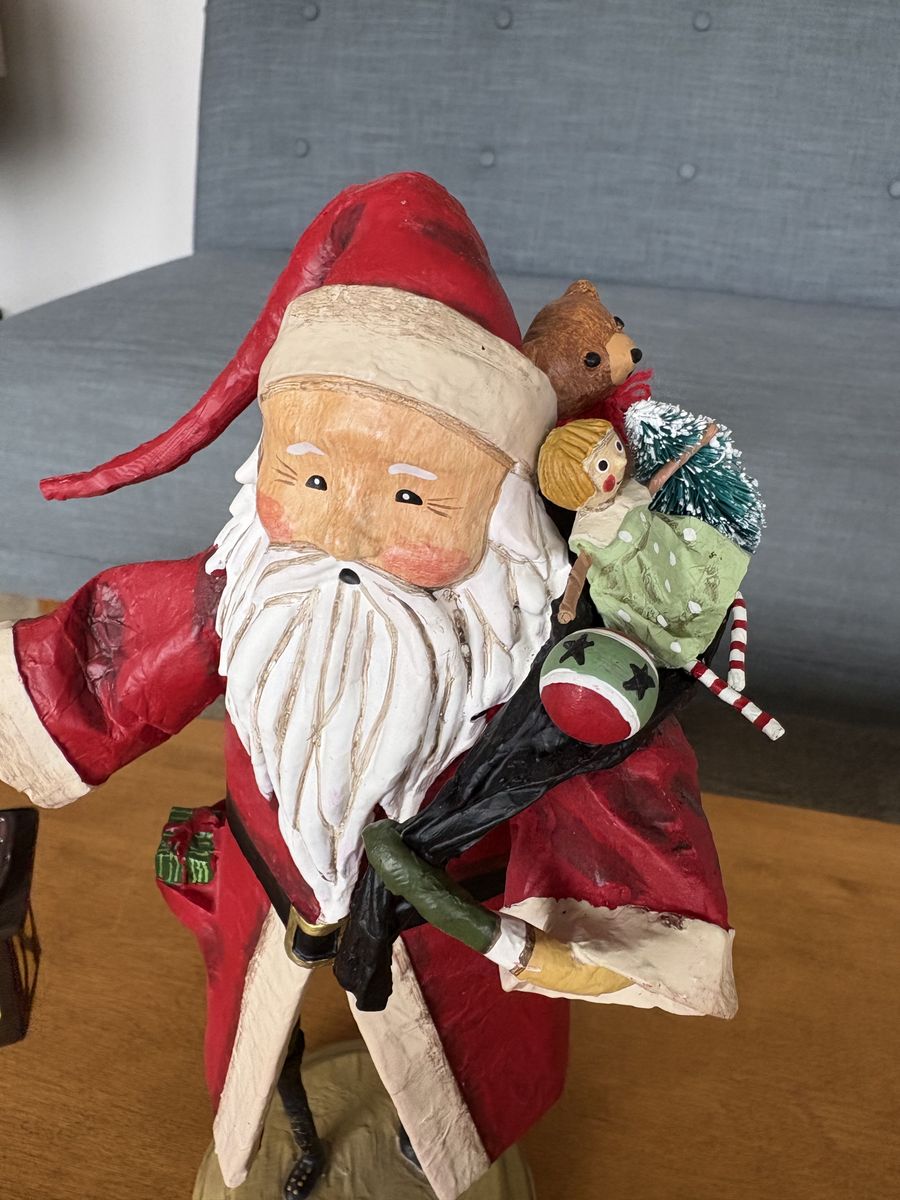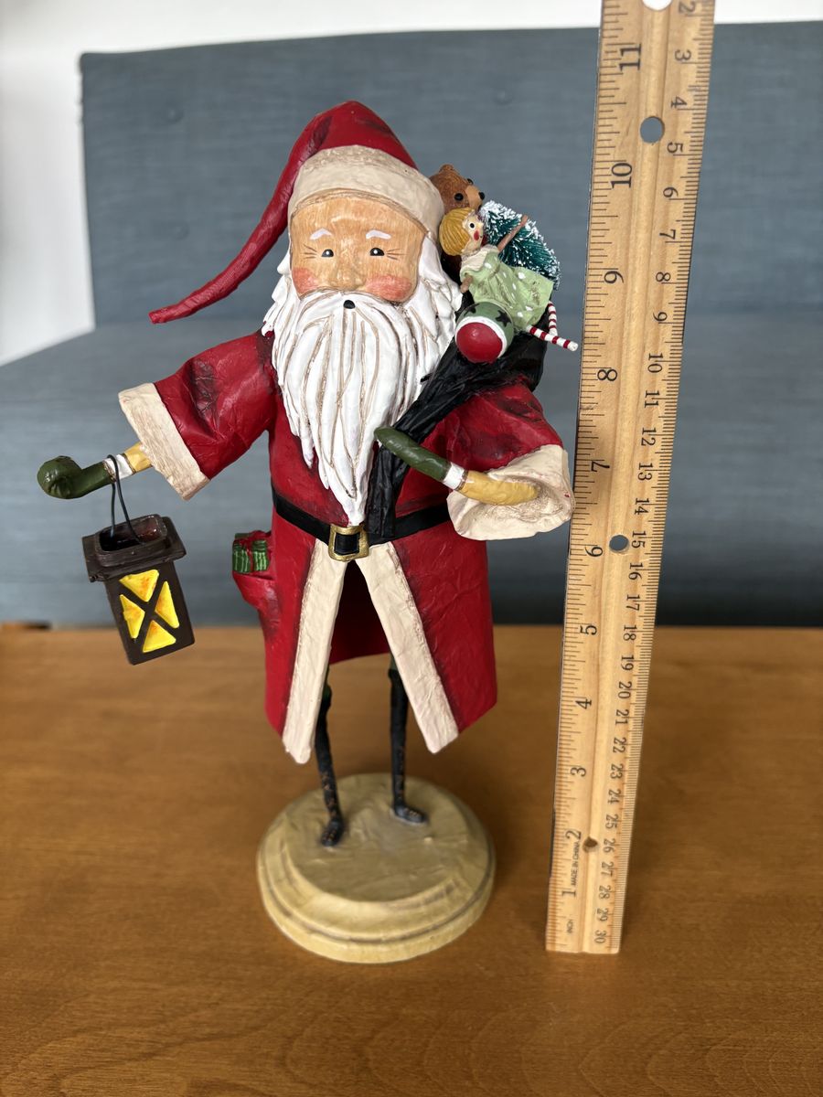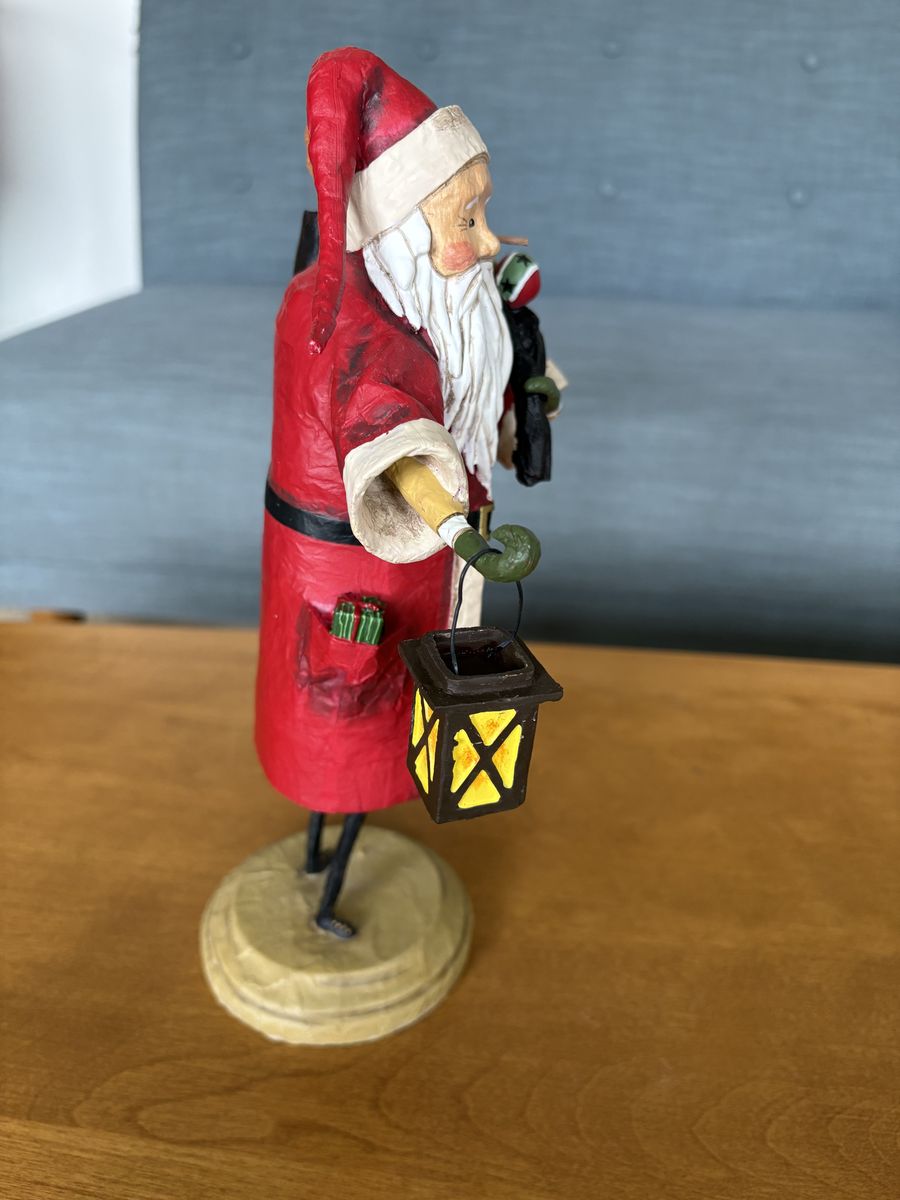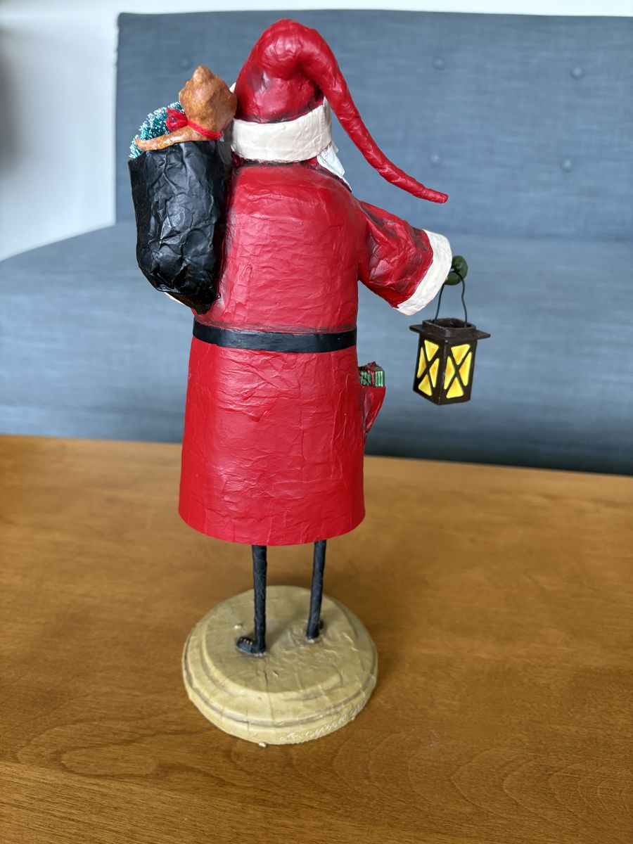 LAuthentic Lori Mitchell "Old Father Christmas" Collectible Figure. Darling collectible Christmas figure, hand-painted resin and wire, 11" tall, 2016. Santa Claus holding bag of toys and lantern. Excellent condition. Text only. Cash or Venmo. Discount on multiple items.