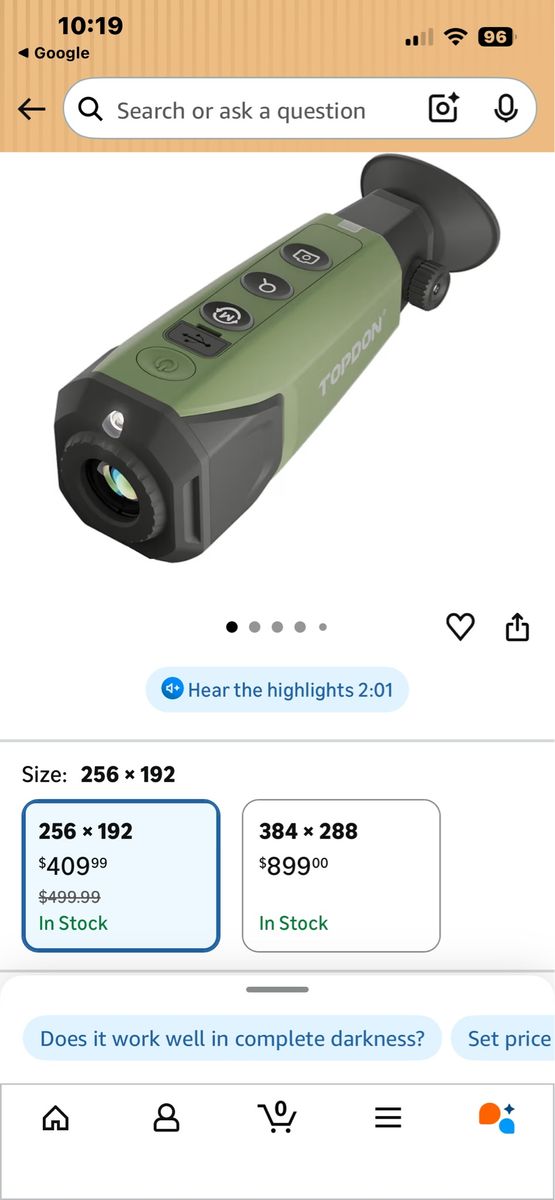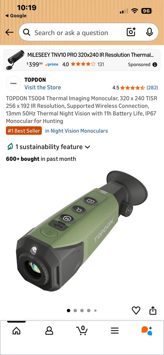 New Open box used it one night on a walk with my dog and this thing is AMAZING!TOPDON TS004 Thermal Imaging Monocular, 320 x 240 TISR 256 x 192 IR Resolution, Supported Wireless Connection, 13mm 50Hz Thermal Night Vision with 11h Battery Life, IP67 Monocular for Hunting
