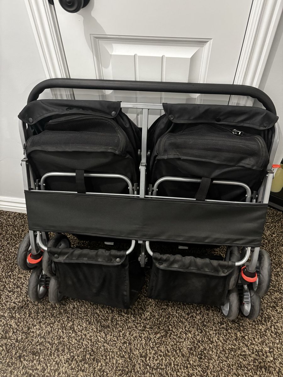 I have a slightly used double pet stroller. No stains rips or tears , looks brand new has 2 baskets for storage. Rolls very smoothly.