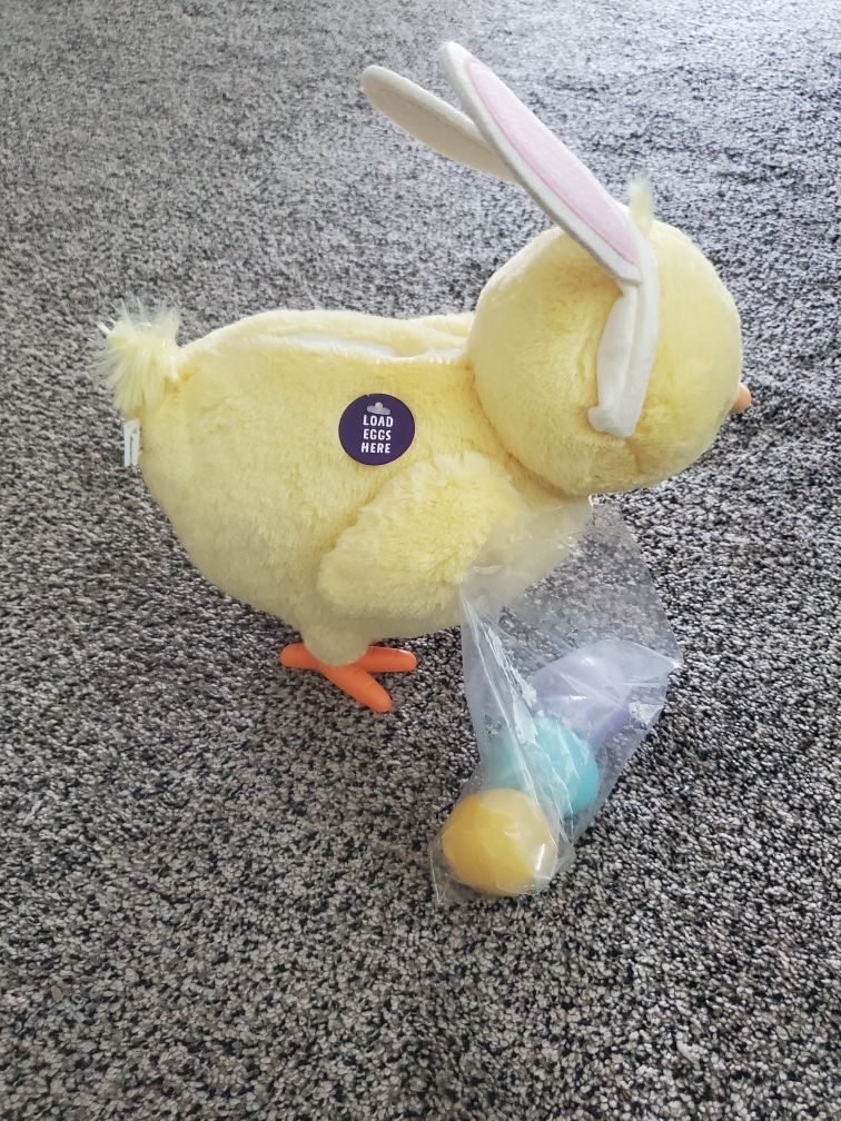 New with tags Hallmark Happy Egg-Laying Chick Interactive Stuffed Animal with sound and motion. Comes with batteries, tested and in working order, comes with three eggs that the chick dances and "lays" while a Parody of the song "Rapper's Delight" by the The Sugarhill Gang plays. Approx. 10.5" tall, 10" long, and 6.5" wide.** **This would make a great Easter gift and is also fun to decorate with. Would also be a funny gift for the The Sugarhill Gang fan in your life.