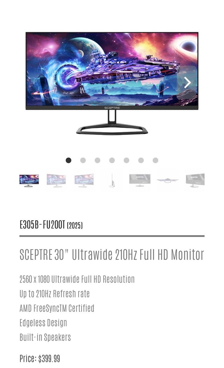30 inch wide gaming monitor 210 hz. 2560x1080 resolution. No issues. Does not come with monitor stand. Asking 150 obo.