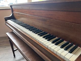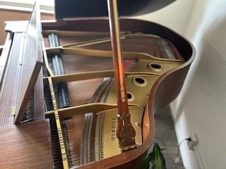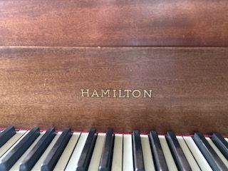 VenmoThis is a 1912 Hamilton Baby Grand Piano. This piano is mahogany with real ivory keys. It comes with grand board and dolly for easy moving.