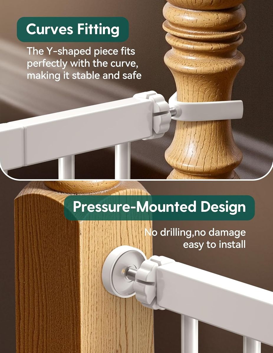 About this item - QUICK & EASY INSTALL: Pressure mount design that is quick to set up. No additional tools are required for installation, and no need to punch holes in the wall. Please note, before installation there will be a gap between the gate latch and the frame which is NOT a defect and it is NOT bent. This gap will be eliminated once installed.