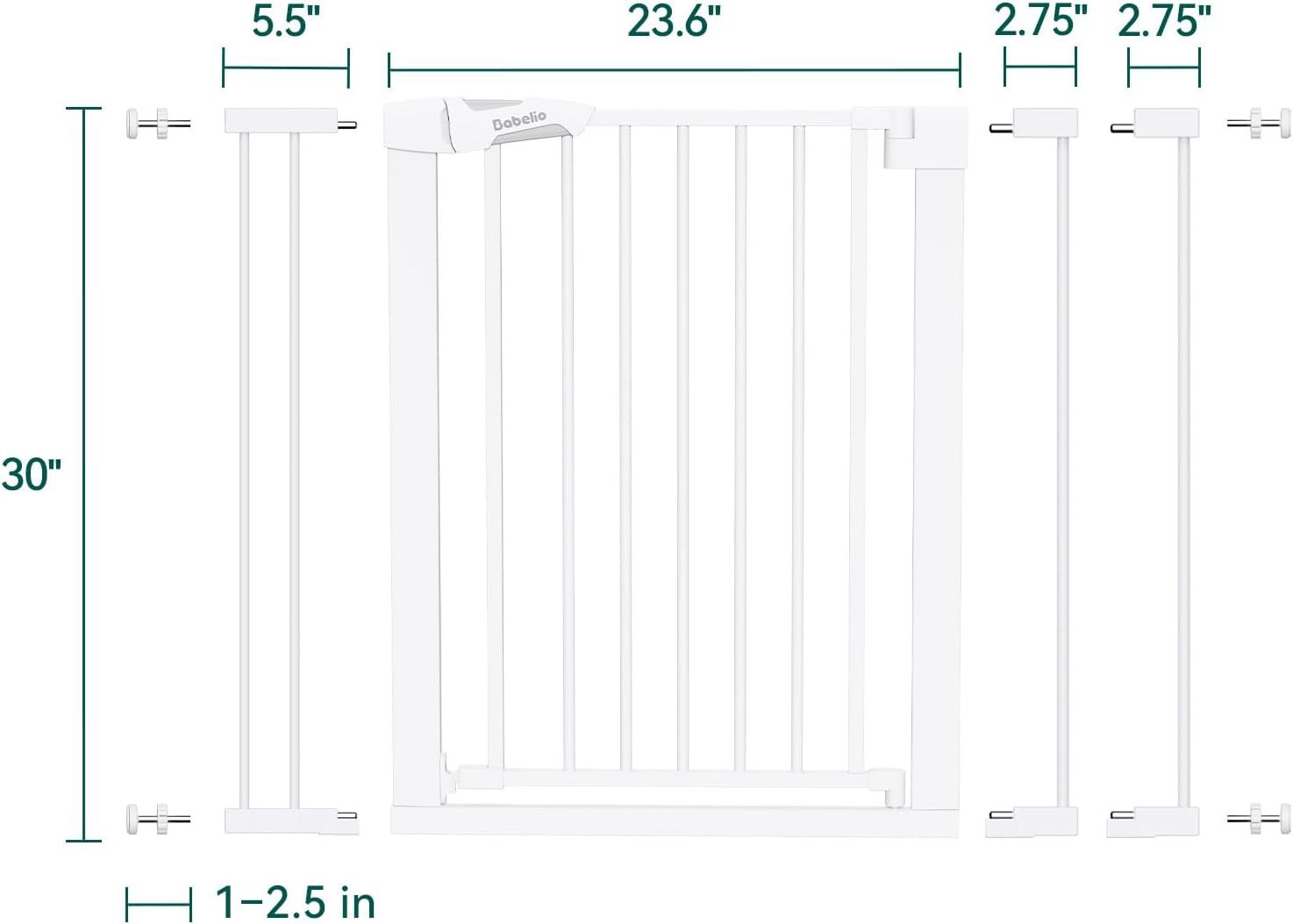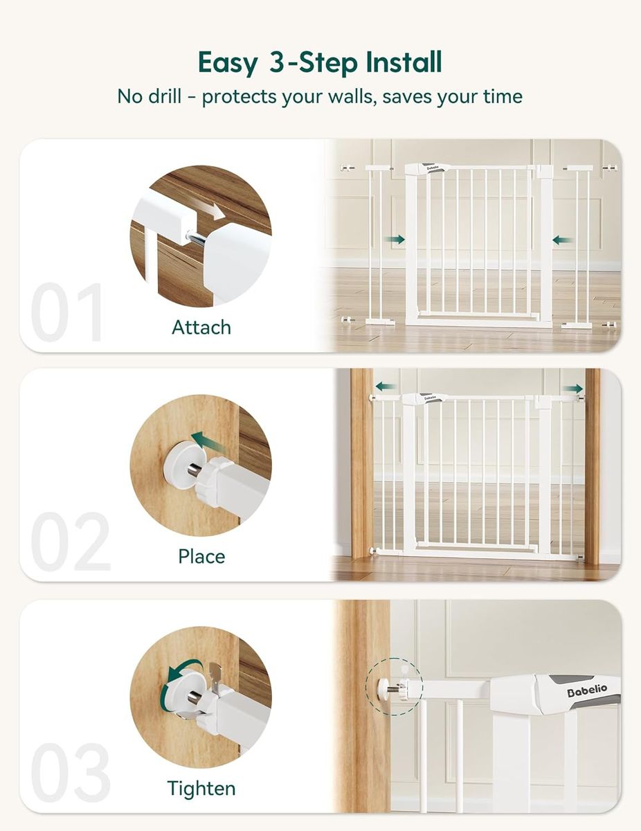 ApplePayBABELIO Safety Gate Door Fits for Stairs, Narrow and Wide Doorways with Auto Close, Easy Install, No Drilling, Pressure Mounted for Baby, Child, Pets, Dog/Puppy, 26''-40'', White