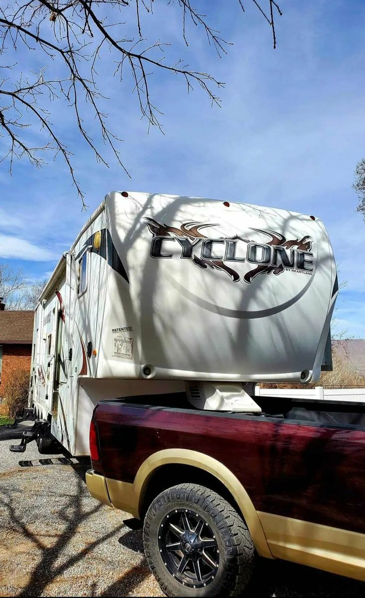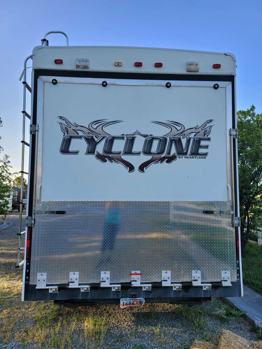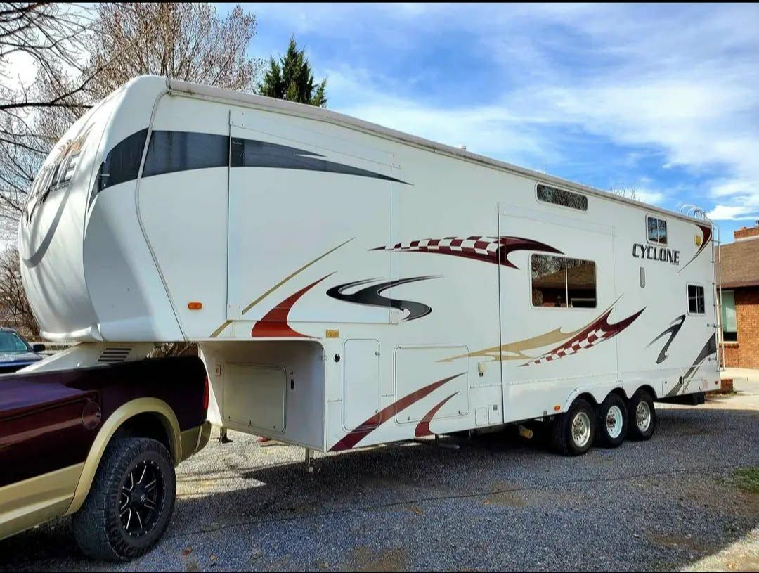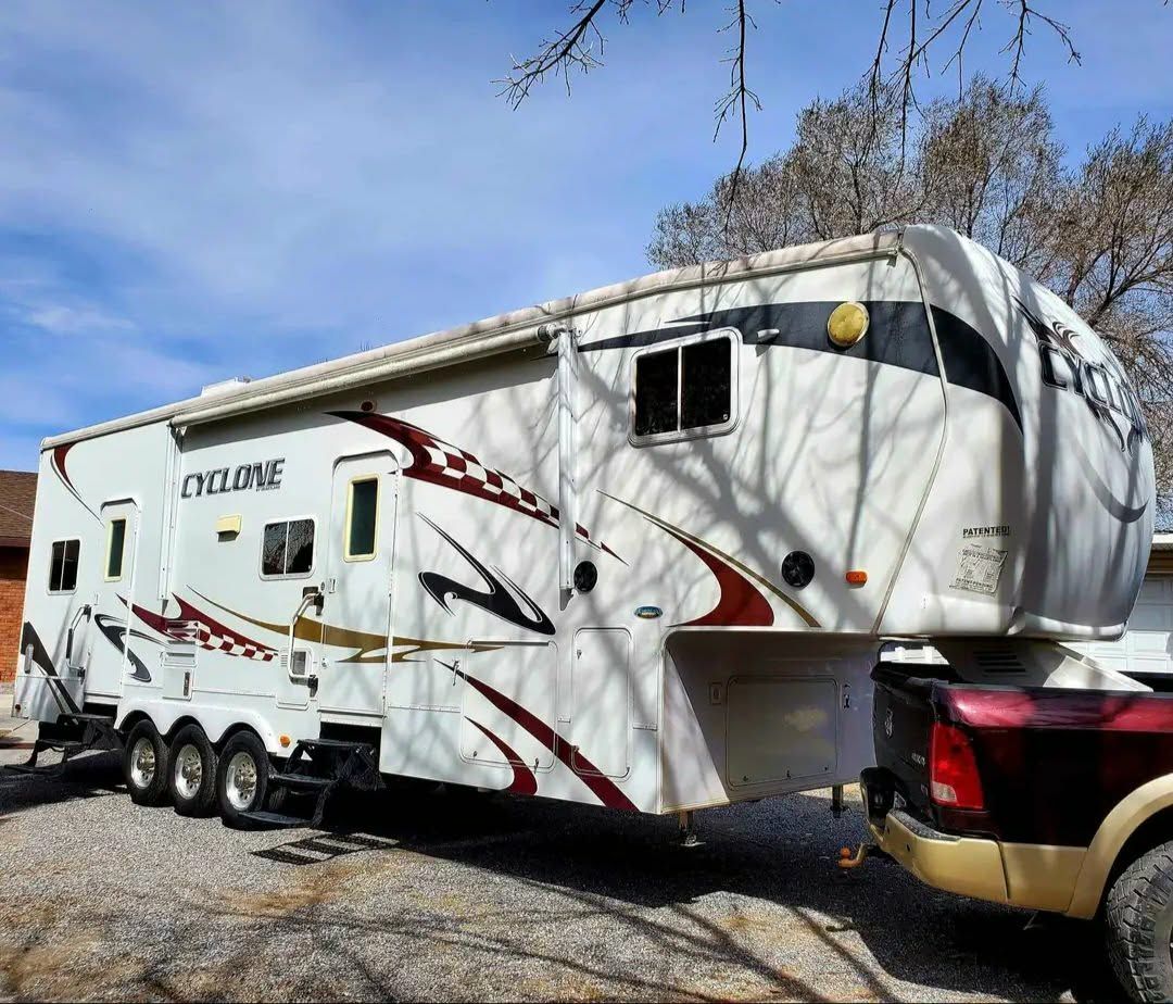 Super clean 34 ft Cyclone Toy Hauler, series M-3210 with a 10 ft garage. We have loved our 5th wheel, but we no longer need a big RV and are ready to downsize. Comfortably sleeps 10 people. Located in Payson