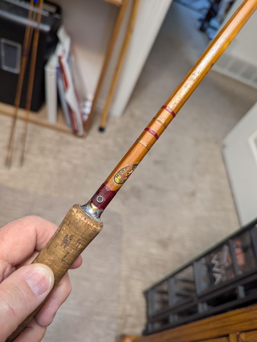 VenmoThis is a Montague Flash 8 1/2' fly rod. Made by Crawford Manufacturing, Est 1843. It is a 3 piece rod with an extra tip. Comes with original canvas case. Made in the 1920'2 through the 1950's. I am told my Grandfather purchased it in 1952 for about $16. It is a slow action rod and a 5 weight line works best. One eye hook in the middle section is missing.