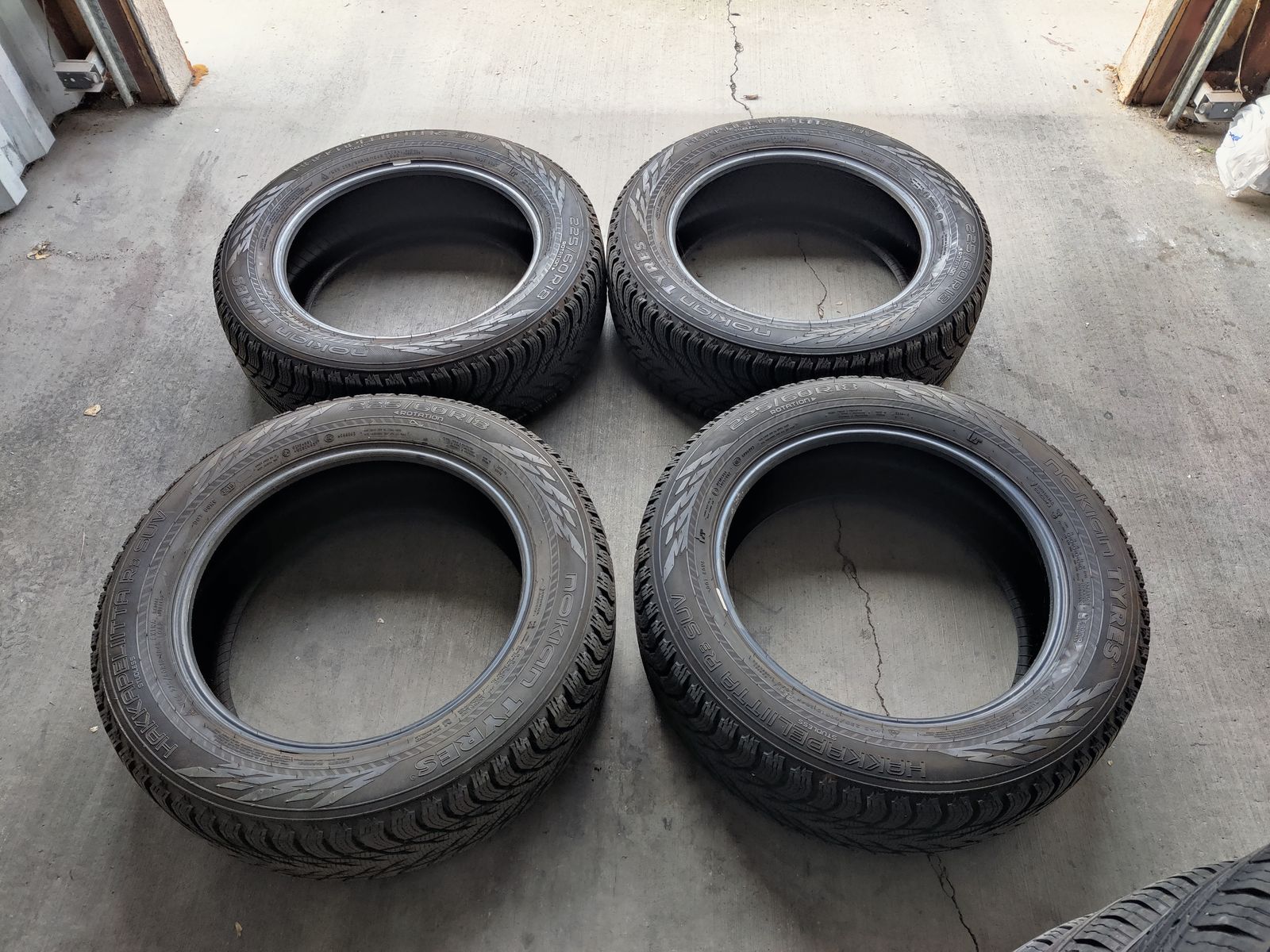 In need of wheel storage space so I am selling a set of Nokian all-seasons mounted to wheels off of a Subaru Outback Limited and unmounted Nokian Hakkapeliitta winter tires. All wheels have minimal cosmetic curb rash. I'd prefer to sell as a complete set, but send me an offer.