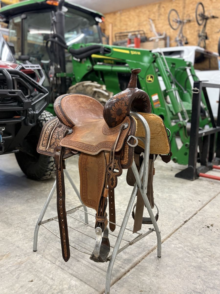 ApplePayMartha Josey Barrel Saddle: 14” seat; Wide Fit; Cash tree, taller swells & 5” cantle; 3-way rigging. Sunflower pattern. Saddle is in great condition. $2400/OBO.