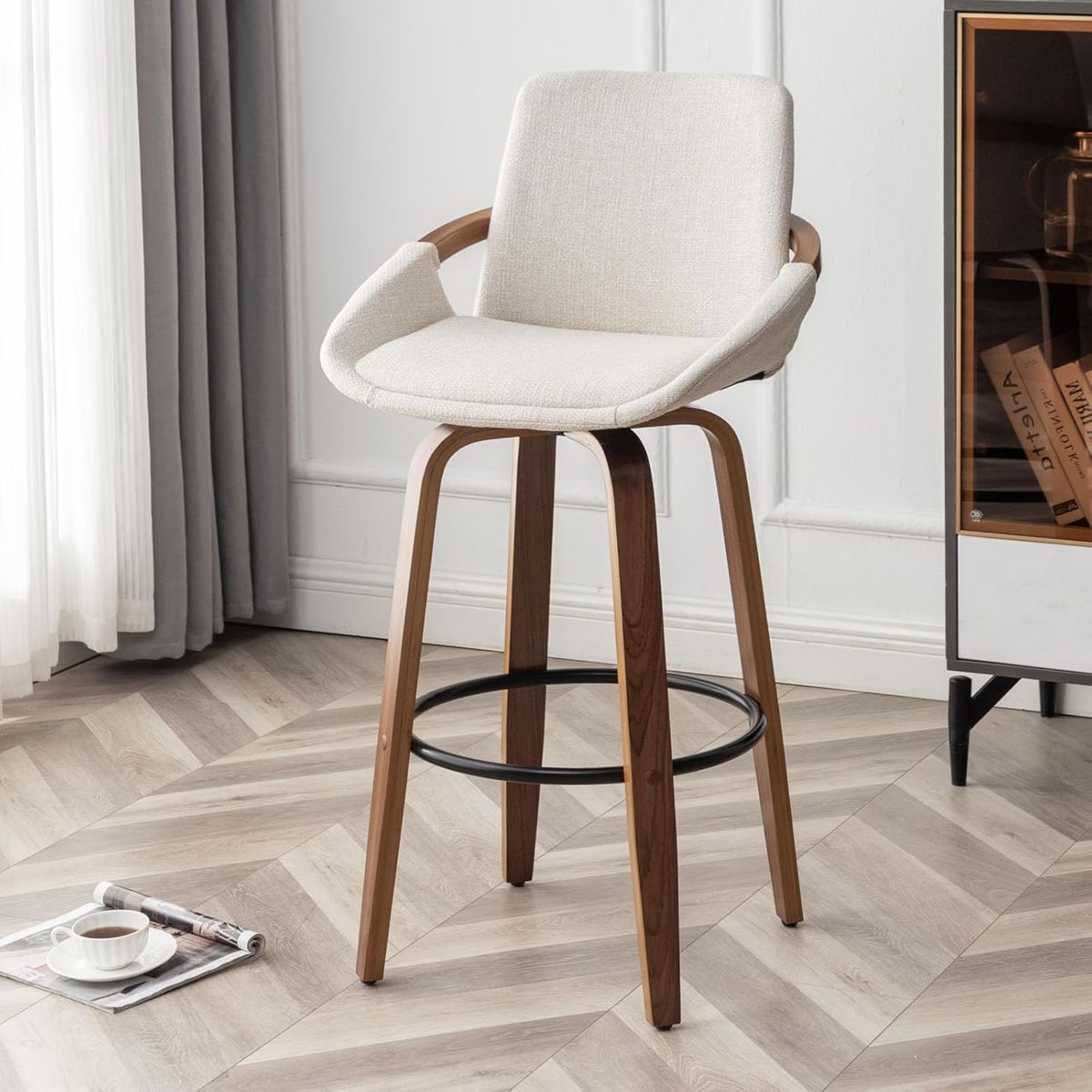 I have a pair of 29.5" new bar height barstools for sale, midcentury modern design, beige/off white fabric upholstery, with wood frame, for your home bar. They would work with a bar height of approx. 40 to 45 inches. These barstools are still in the box, some assembly required. They retail for $280., I’m only asking $180. Call or text Kent at: 801-558-2459