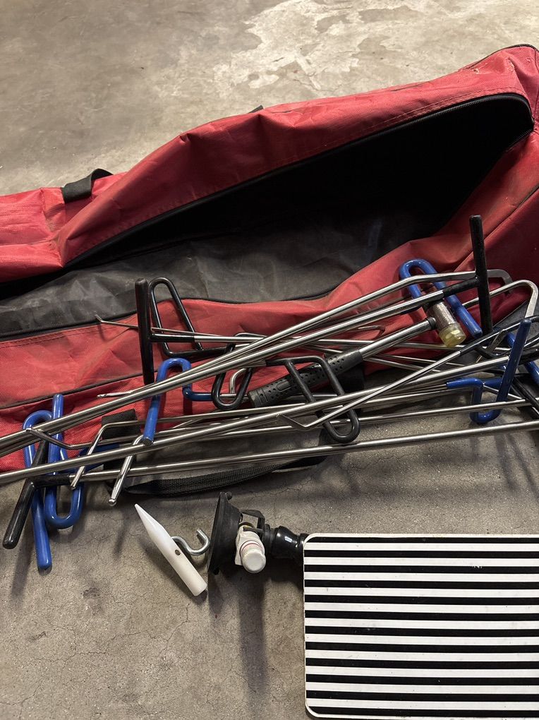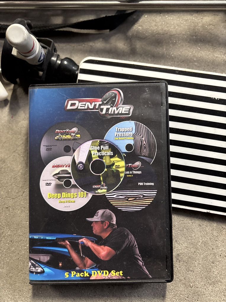 VenmoPaintless dent repair beginner tools with instructional DVD and reflector board and carrying case. Get started in a very lucrative profession and learn paintless dent repair. Or, work on your own dents and dings. I also have a jeep fender you can take to practice on. The DVD’s themselves are worth the price.