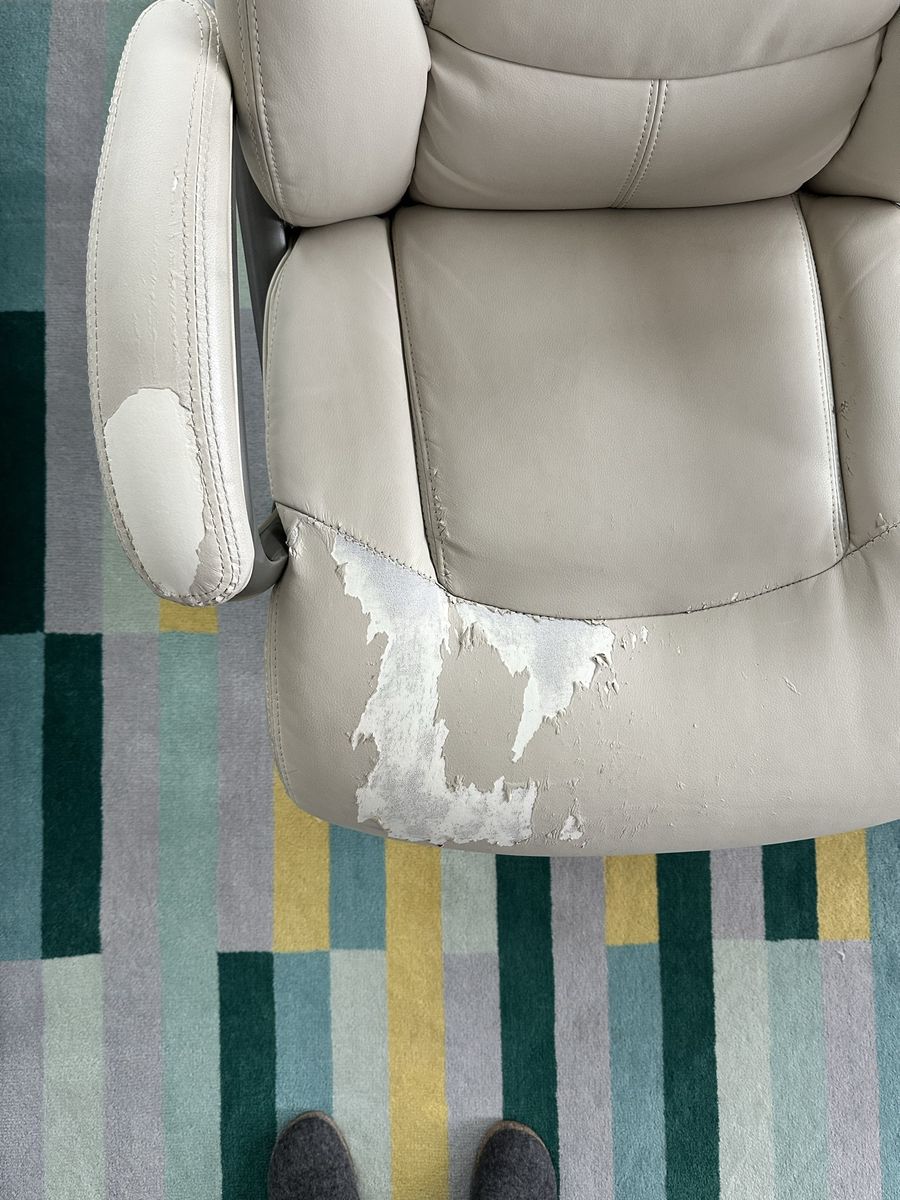 Free beige Sealy office chair. Very supportive and comfortable. The PLU is peeling as shown in photos.