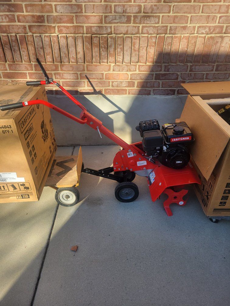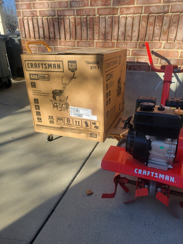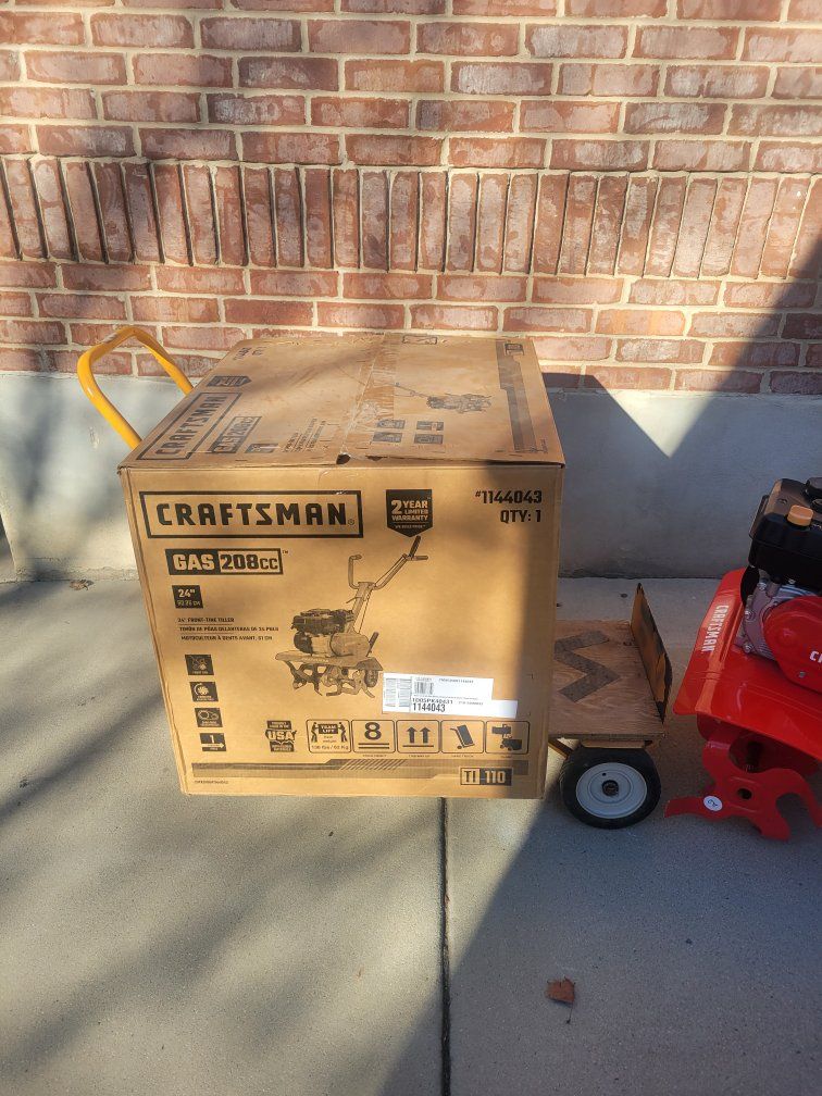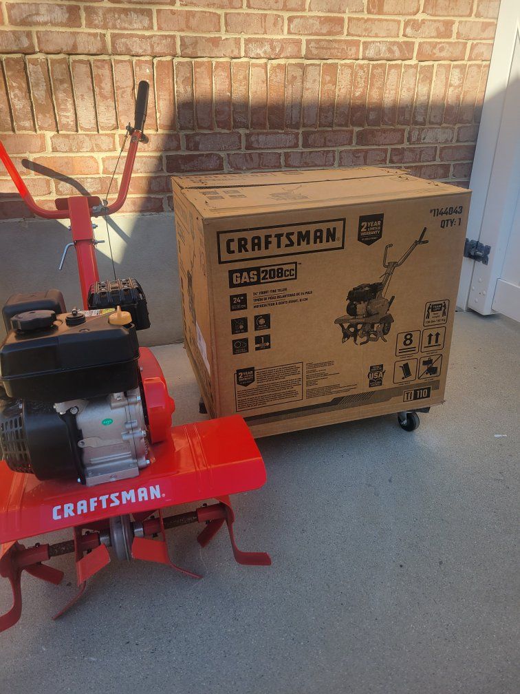 Cash only only sale nice new Tiller. CRAFTSMAN 208-cc 24-in Front -Tine Forward-rotating Tiller.
