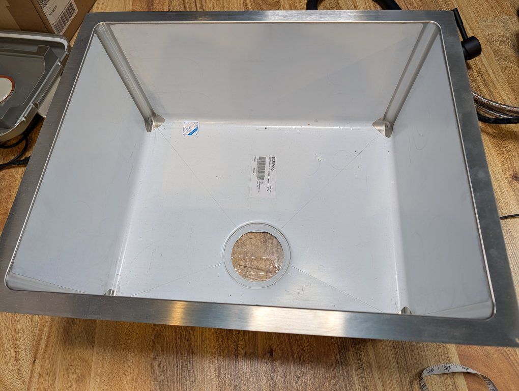 VenmoOuter rim measures 22" by 18", sink inner rim measures 20" by 16". Rectangular. Brand New with protective film still on. Great for kitchen, laundry or utility room! Bought it from Standard Plumbing. Located in North Lehi
