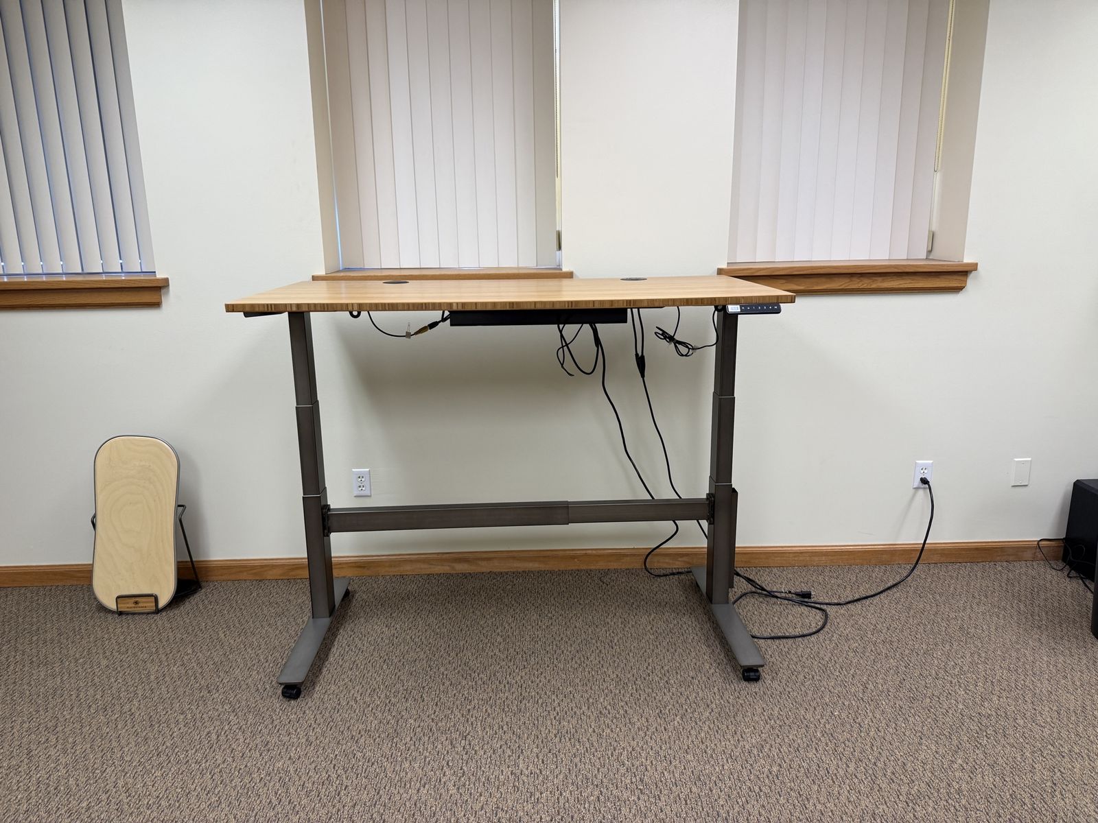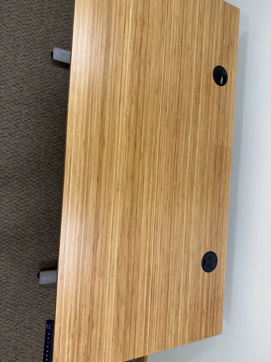 ApplePayThe desk measurements are 5 feet wide by 2.5 feet deep. Obviously the height is adjustable. This desk is beautiful, works amazing and honestly is pretty much like new. Only used it a little bit for ver the last couple years. I am closing down my office space, so I don’t have a need for this desk anymore. I spent over $1k on the desk, and I am looking for $500/OBO on it. If you have questions or want more photos just hit me up. Text is great!