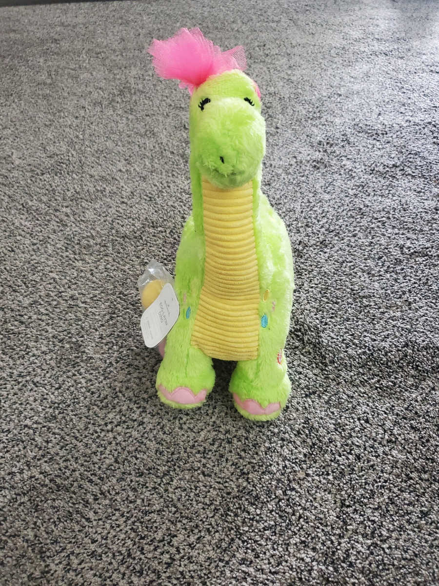 New with tags Hallmark Egg-Layin' Dino Interactive Stuffed Animal with sound and motion. Comes with batteries, tested and in working order, comes with three eggs that the Dino squats and "lays" while a Parody of the song "Push It" by Salt-N-Pepa plays. Approx. 14" tall, 5" wide and 12" long. This would make a great Easter gift and is also fun to decorate with. Would also be a funny gift for the Salt-N-Pepa fan or dinosaur collector in your life.