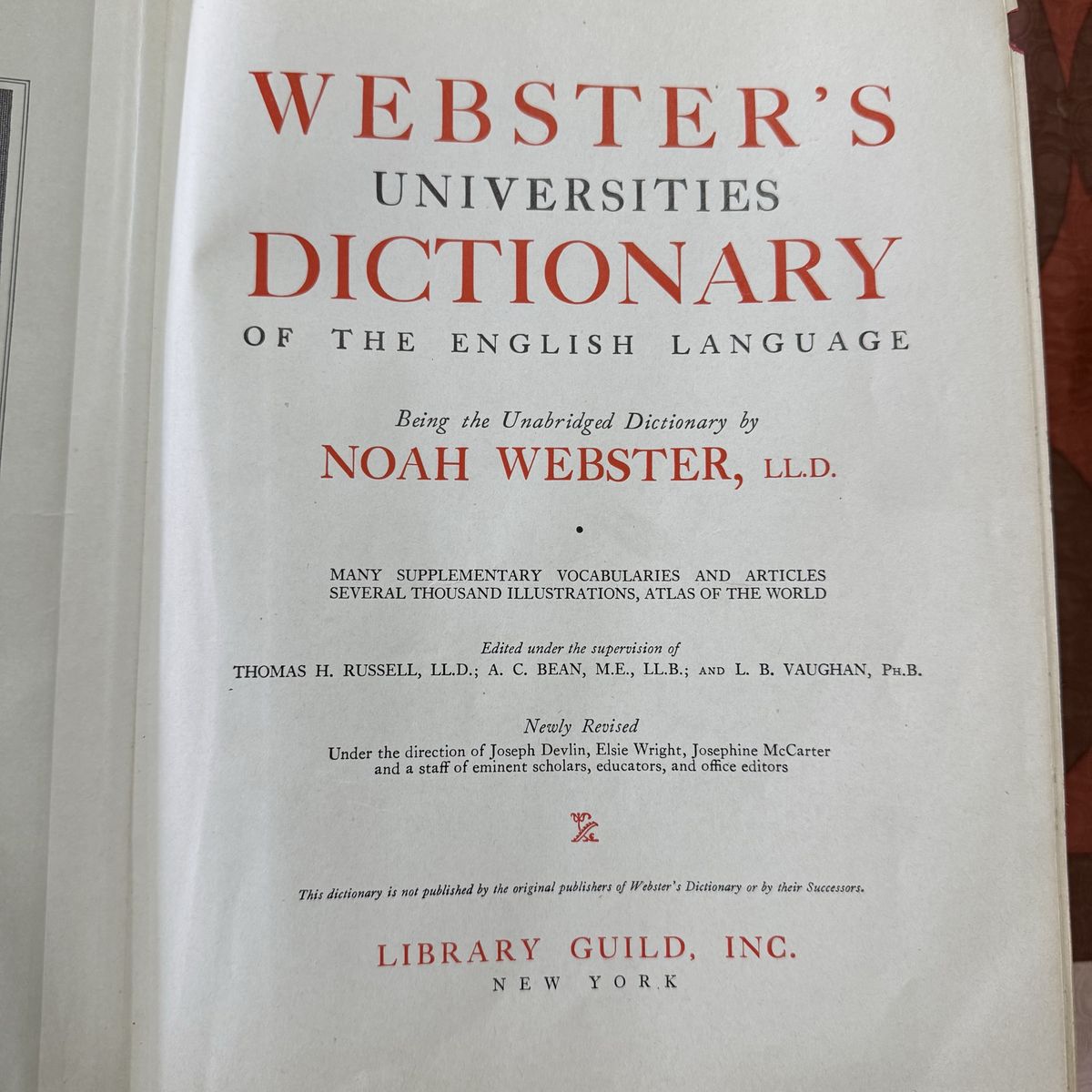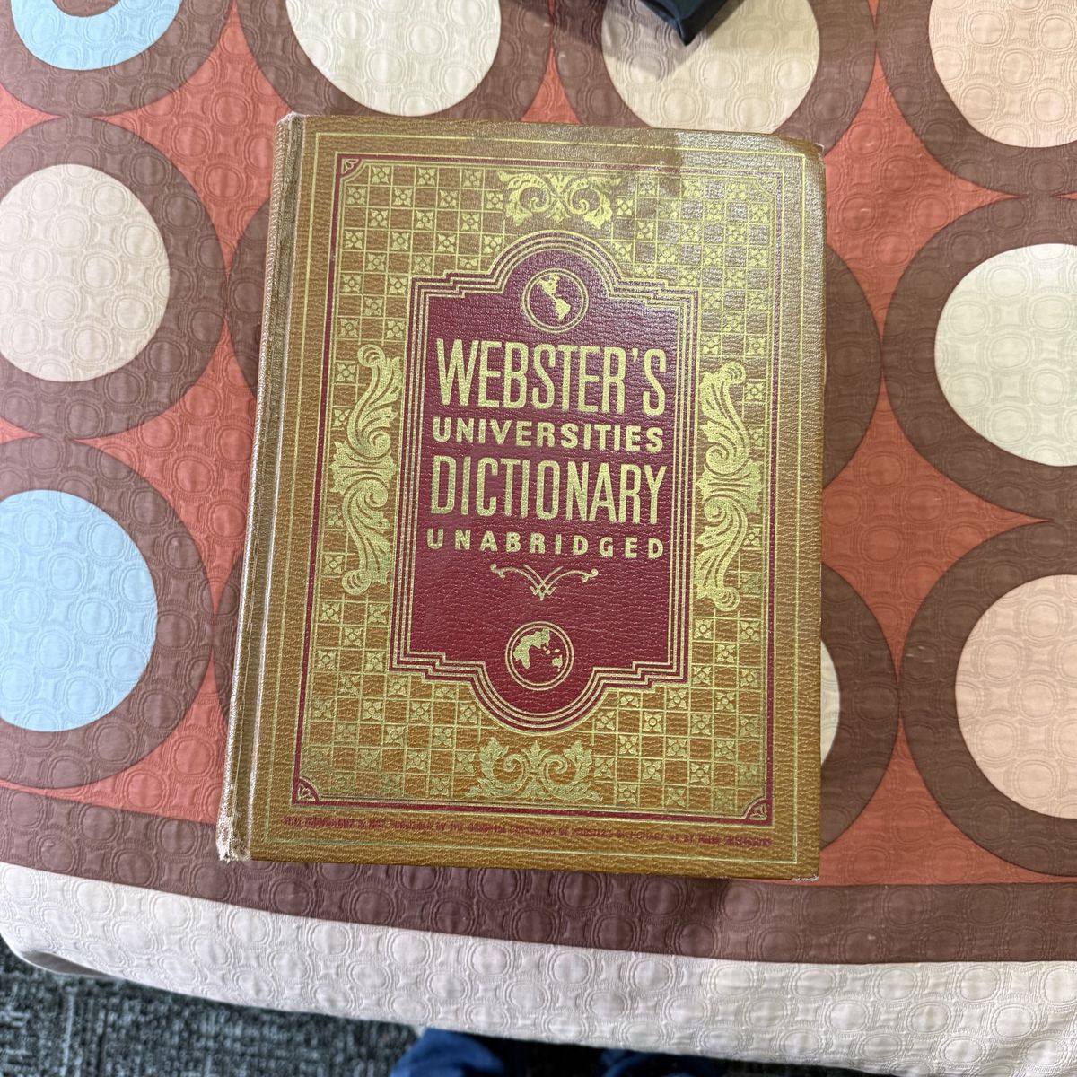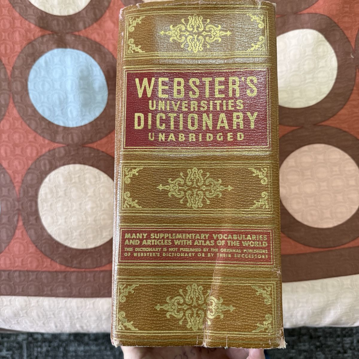 Vintage 1942 Webster’s Unabridged Dictionary – Ornate Gold Gilt Price: $35 OBO Condition: Good (Vintage) Description: Available for sale is a classic 1942 edition of Webster’s Universities Dictionary (Unabridged). This WWII-era volume features a striking burgundy and tan hardcover with detailed gold-embossed filigree on both the cover and spine. Item Details: • Publication: 1942 Copyright • Features: Comprehensive unabridged text, supplementary vocabularies, and World Atlas. • Condition: Solid vintage condition. Binding is secure; pages are clean. Light shelf wear on the spine and corners consistent with its 80-year history. Applications: This piece is ideal for serious collectors, as a high-quality photography prop, or as a statement decor piece for a professional office or home library. Transaction Details: • Payment: Cash or Venmo preferred. • Location: [Insert Neighborhood] • Delivery: Local pickup only.