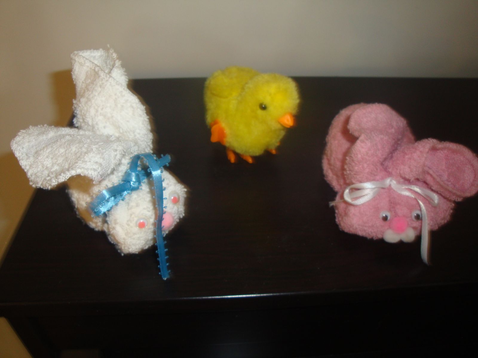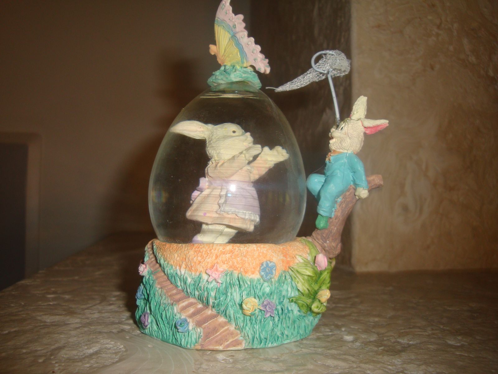 large bunny - great for display or kids to cuddle - $13; rabbit boy & girl - $5; rabbit snow globe $5; piano or counter top decorations - rabbits out of wash clothes can hold eggs - $2 ea; hoppy chicken - $1; garden decoration wheel barrow - $7. Susan. 801-875-2200