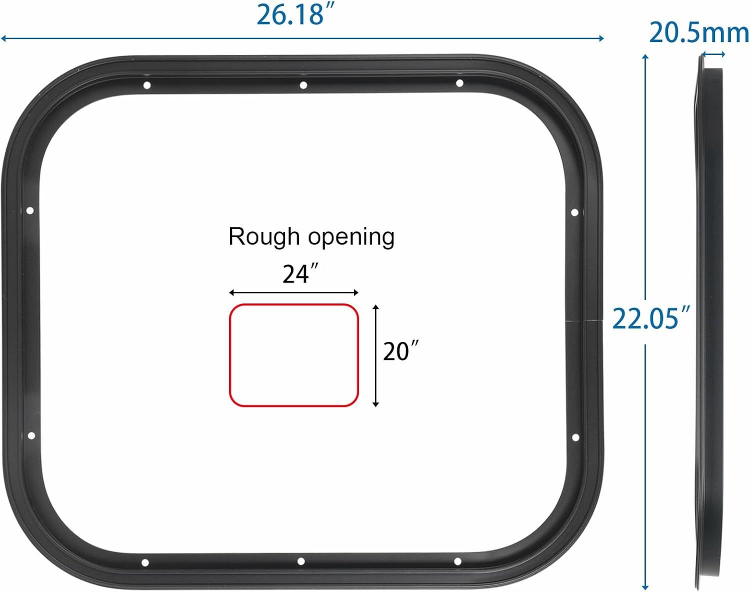 ApplePay20mm Deep Trim Ring 24x20in, ONLY Suitable 24x20in RV Window with 2“ Walls