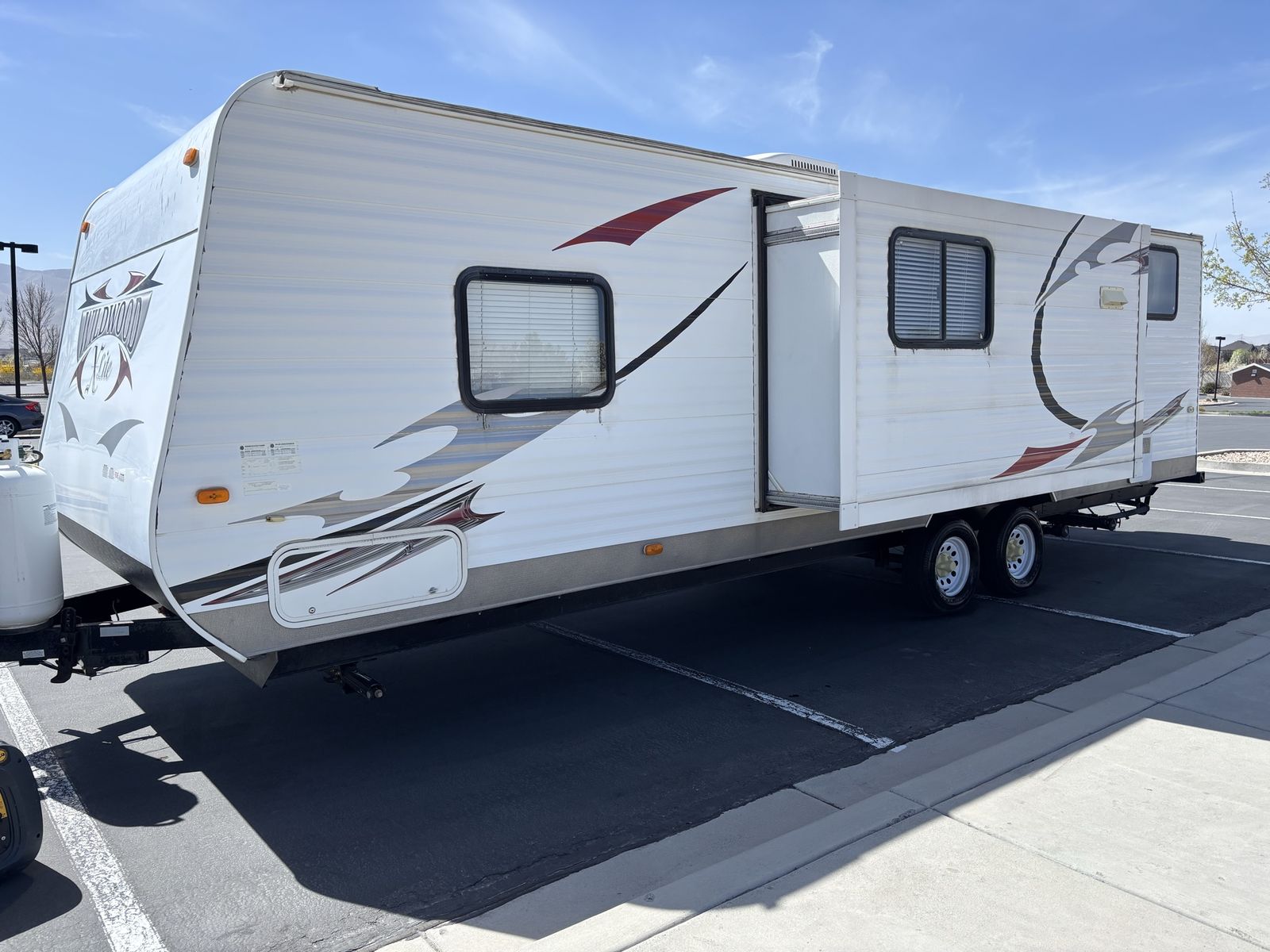 2013 wildwood X LITE 28FT bunk house double door whit super slide out in immaculate condition no leaks no damage sleep 8 3 burner stove oven microwave full size refrigerator rear private full size shower and restroom fully self contained non smoking or pets no rips or tears to upholstery brand new tires brand new awning I’m asking $10,900 (801)803-3047
