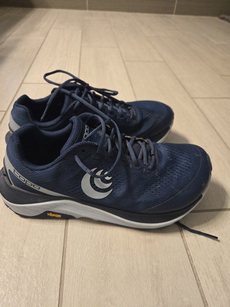 VenmoTopo Ultraventure 3 womens running shoe SIZE 9.5 Excellent condition, only worn a few times. Very comfortable, vibram sole. Navy blue in color. $75 obo. Brand new they retail for $150 plus.