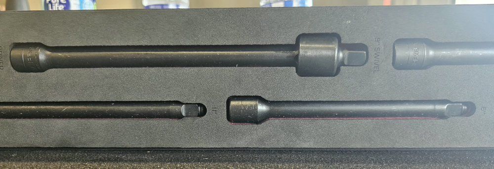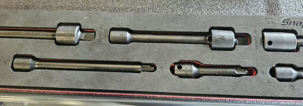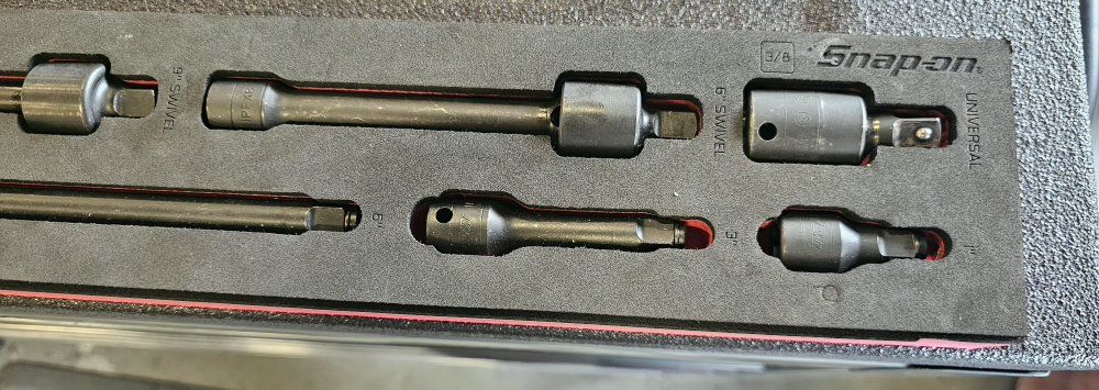 Venmosnap on extentions and swivel extentions different sizes( in small writing its engraved in the foam)Ask and i can send a closer Pic . $600 includes red foam organizer that came with tools . used once text is best 8016343688