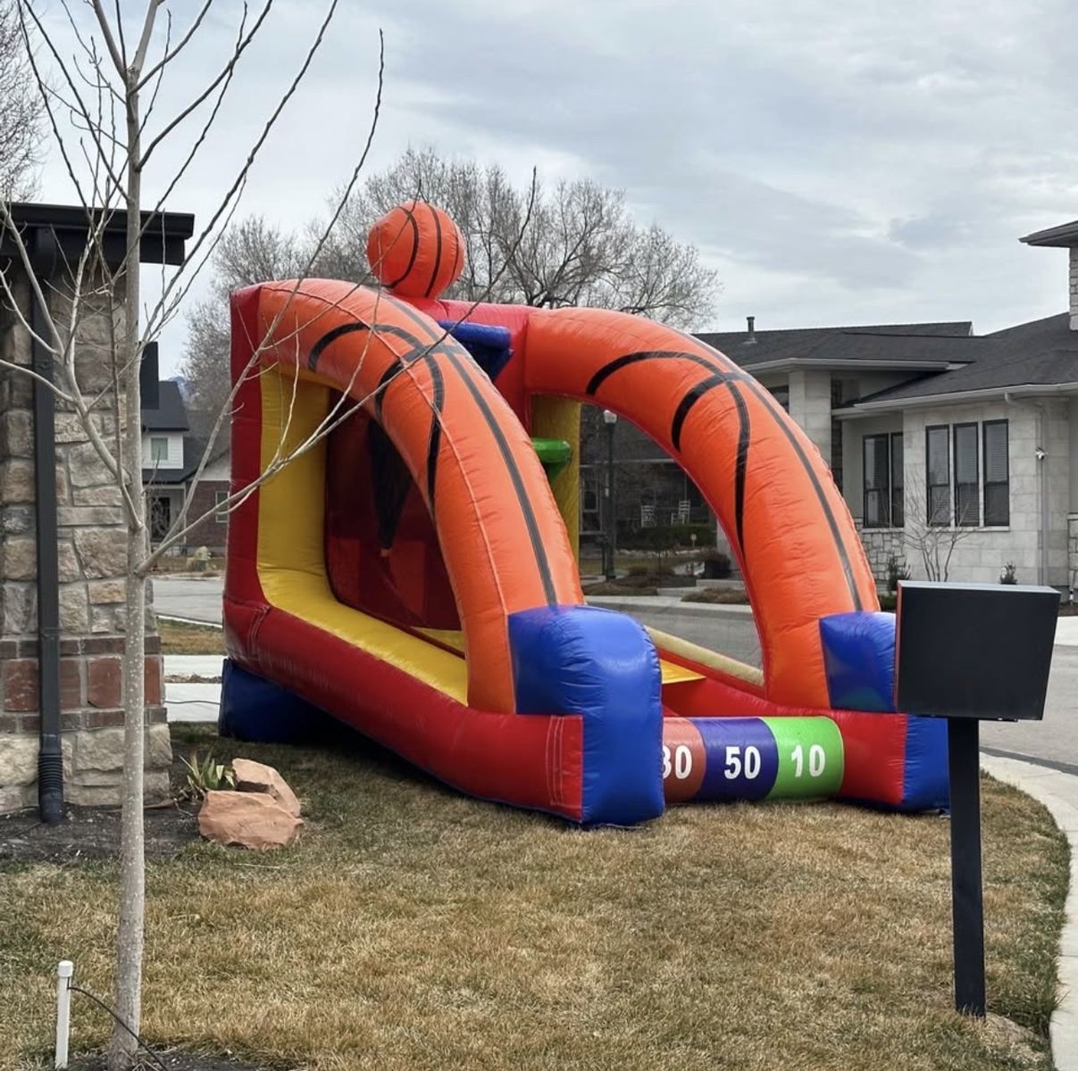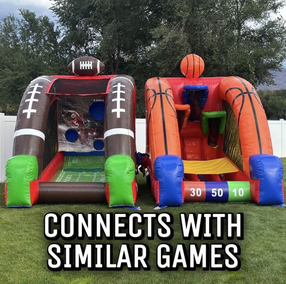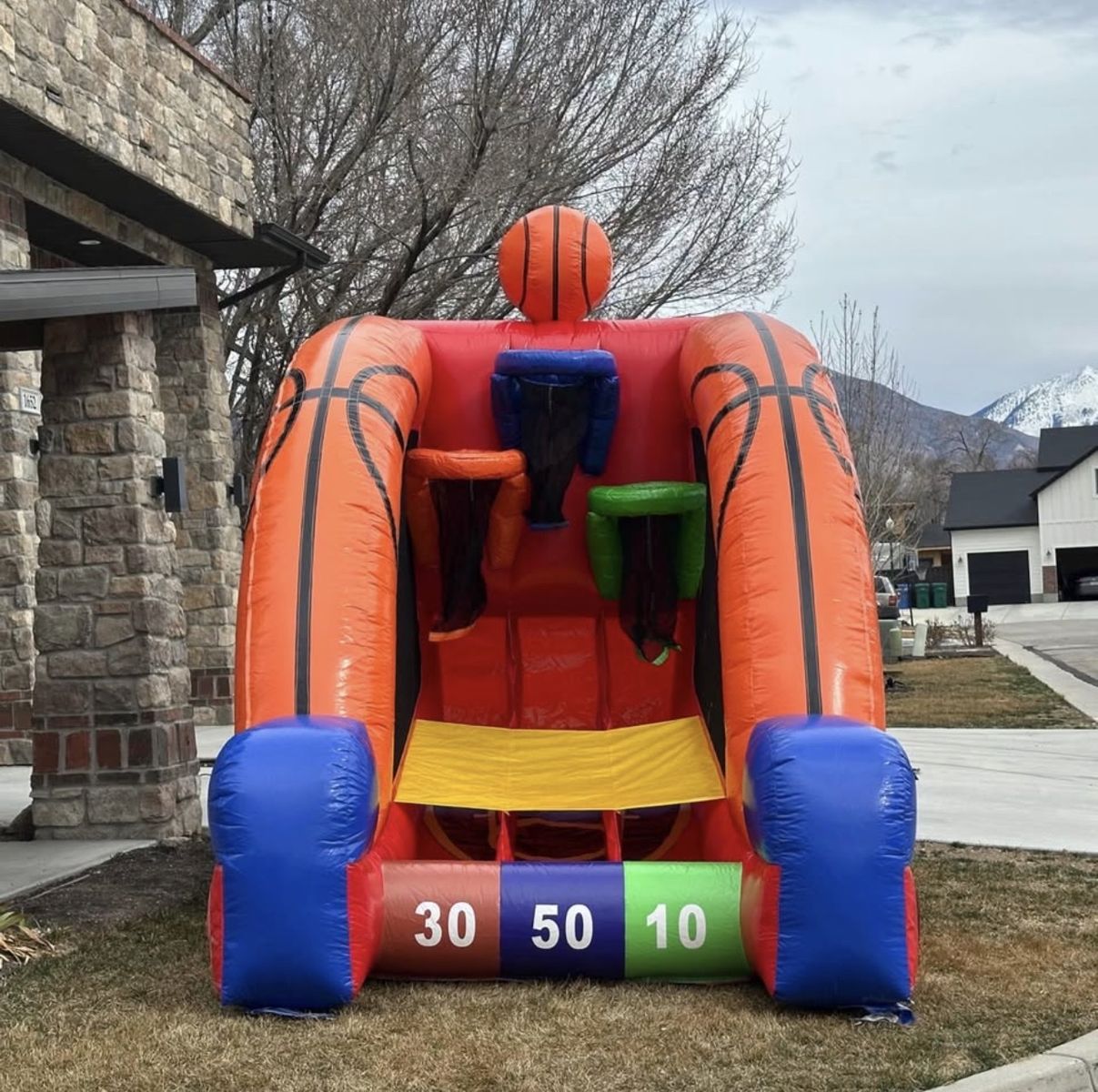 Standing 12ft tall, 8ft wide, and 14ft deep, this vibrant inflatable basketball game draws attention from far away! Including 3 basketballs this is a perfect choice to easily increase engagement at your event! Although it may resemble a bounce house, do not climb on it for your own safety!