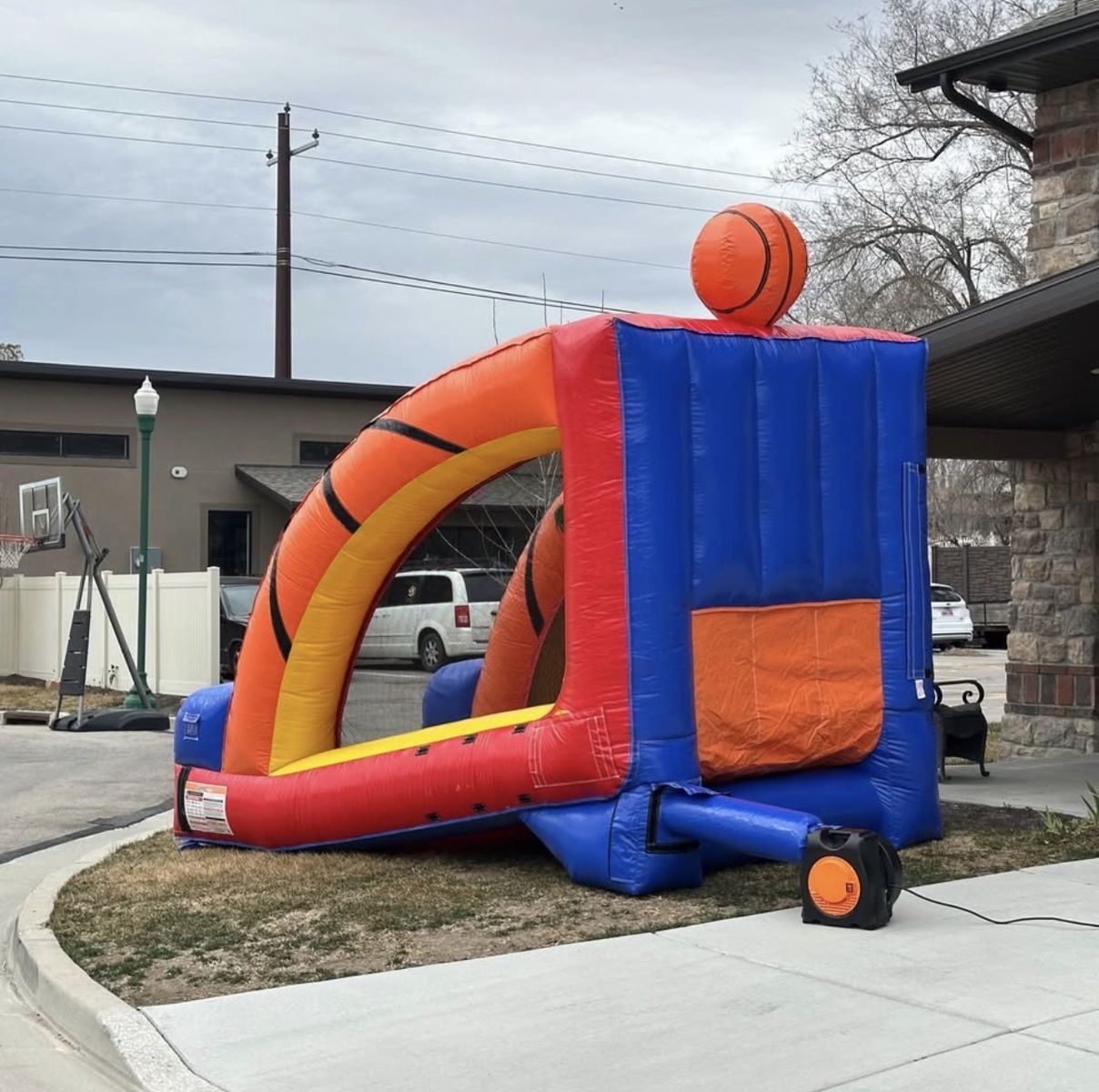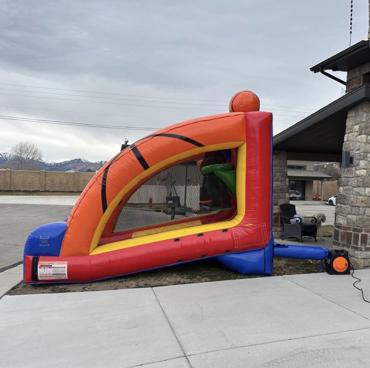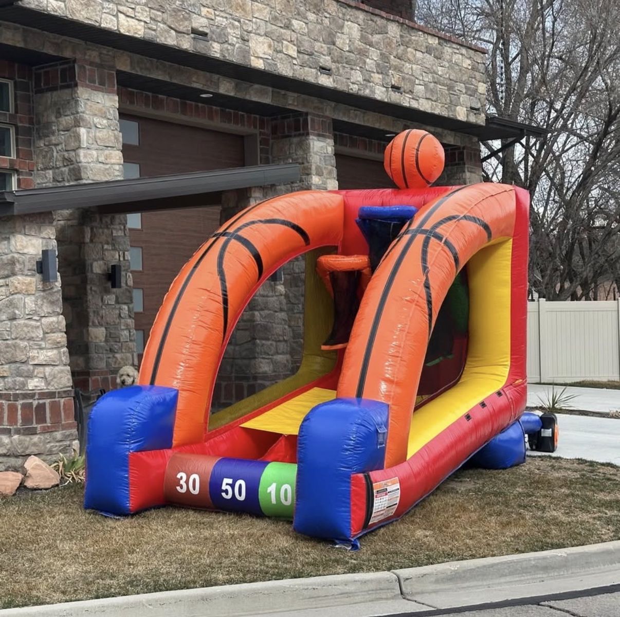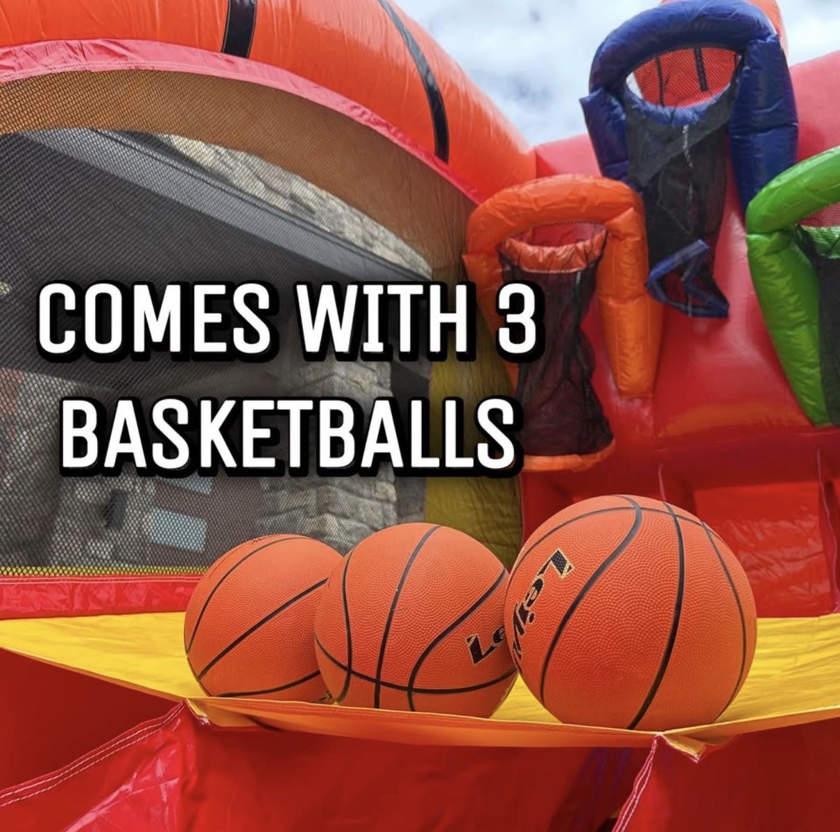 Standing 12ft tall, 8ft wide, and 14ft deep, this vibrant inflatable basketball game draws attention from far away! Including 3 basketballs this is a perfect choice to easily increase engagement at your event! Although it may resemble a bounce house, do not climb on it for your own safety!