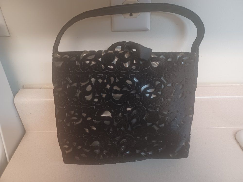 Small velvet handbag in excellent condition. Never used. Black velvet outside with clear plastic liner inside. Made by Victoria's secret. $15 cash only Please txt 801-654-0982 if interested