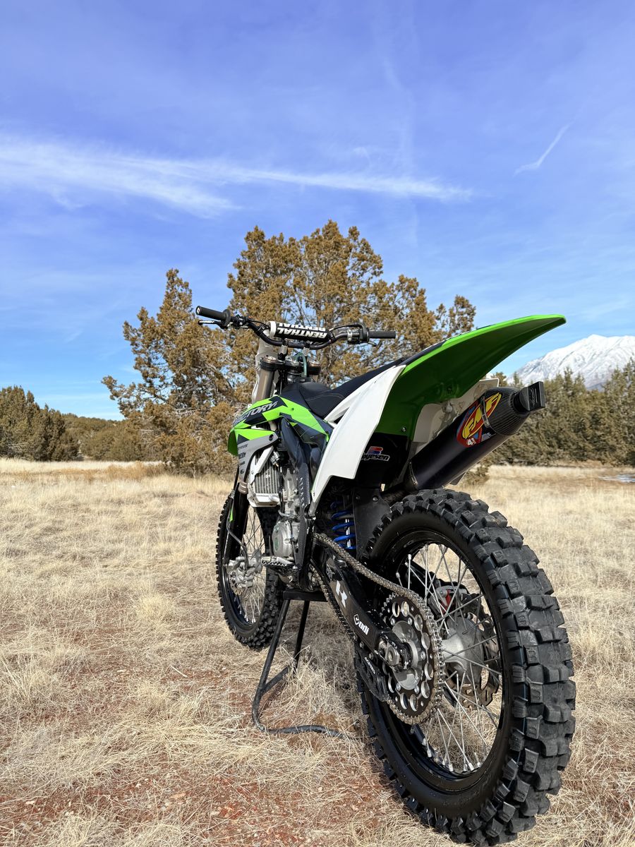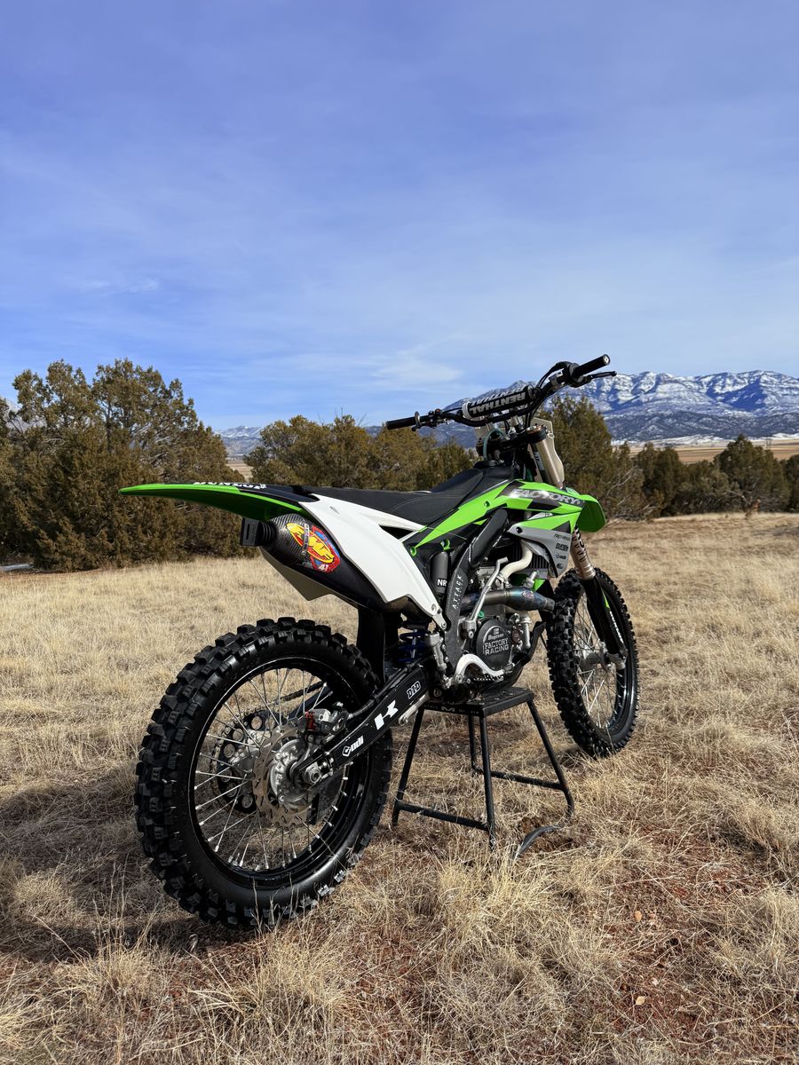 Recently purchased a new KX, so I’ve decided to sell this one. It’s been a great bike, I am the original owner. This bike has been meticulously maintained! Pulled apart every winter, greased bearings, steering stem, axles, linkage etc and then torqued back to factory spec per owners manual. The air filter has been cleaned after every ride, and oil changed after every other ride. I’ve ran the same KLOTZ mx4 engine oil in this bike since I pulled it off the showroom floor. I have just recently (last month) adjusted valves, and they are all in spec and tolerance. Starts first kick. I have the original SFF airtac forks that came with the bike, I pulled them off and added 49mm KYB spring forks to improve handling and comfortability. They are a lot more plush and forgiving than the inconsistent air fork. Comes with TONS of upgrades! If you’re curious about the upgrade list, wanna come take it for a ride, or thinking about making this your next bike.. call or text me at 435-660-0932