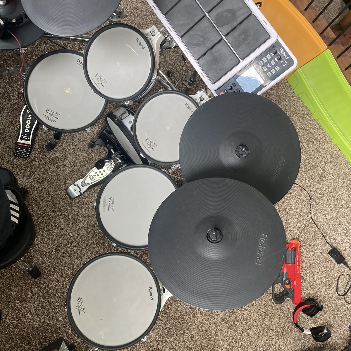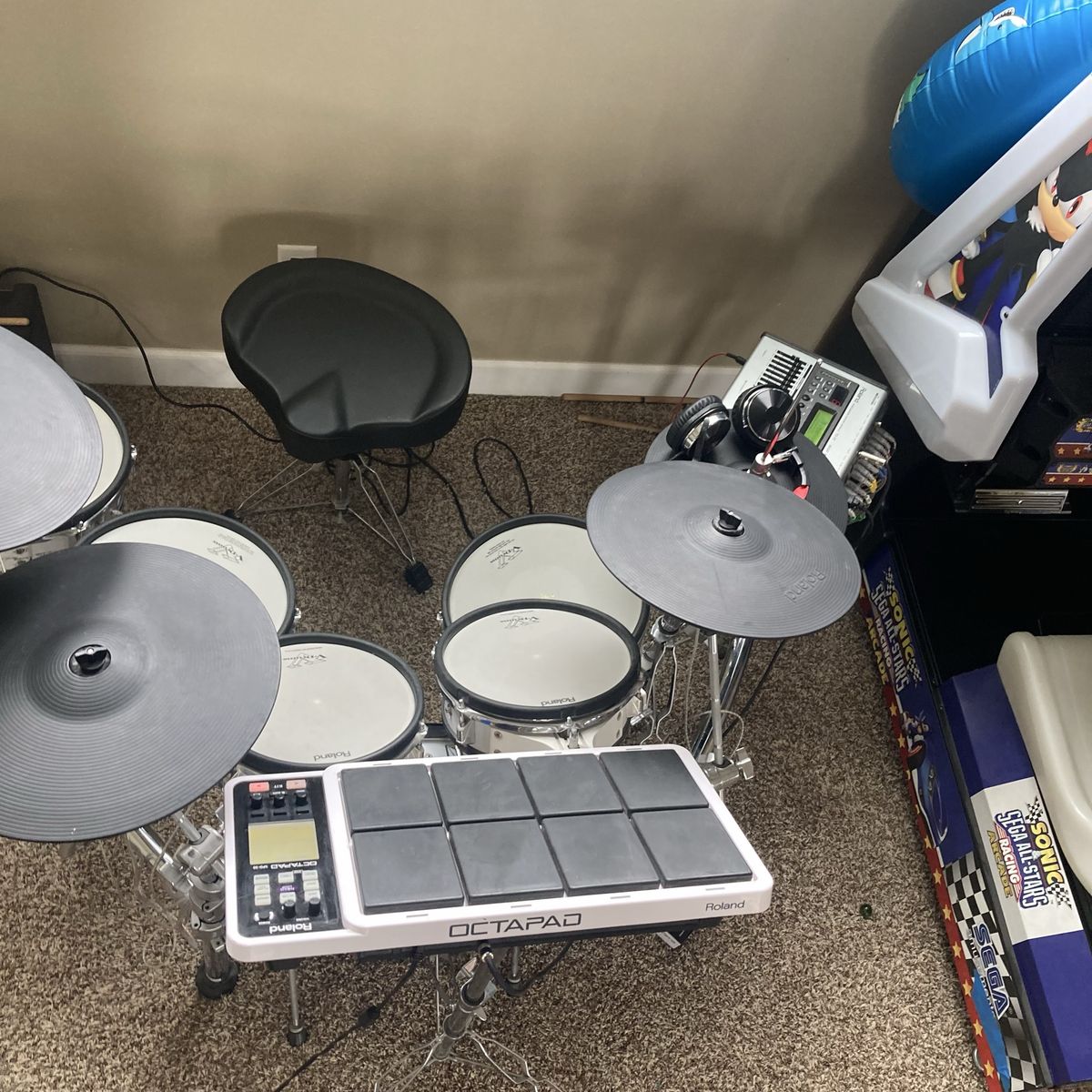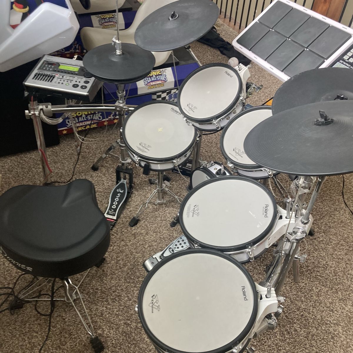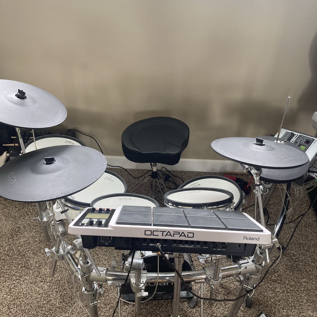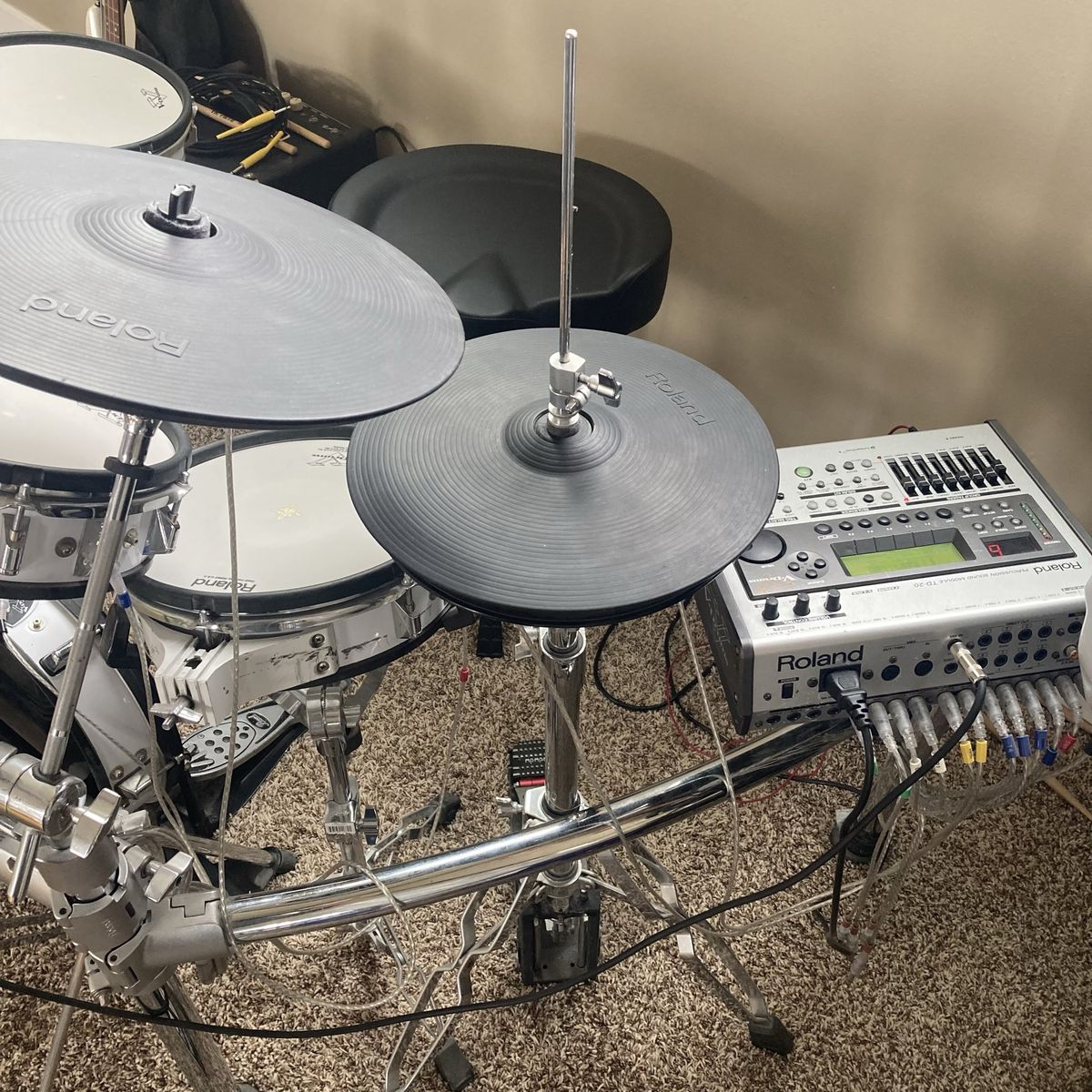 Awesome studio set with plenty of extras the best deal on KSL if you’re wanting to take a stab at electric drums, nobody beats ROLAND hands-down… this package includes everything you see in the pictures: