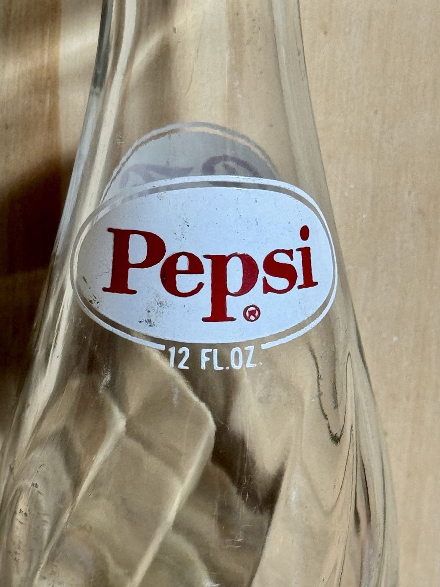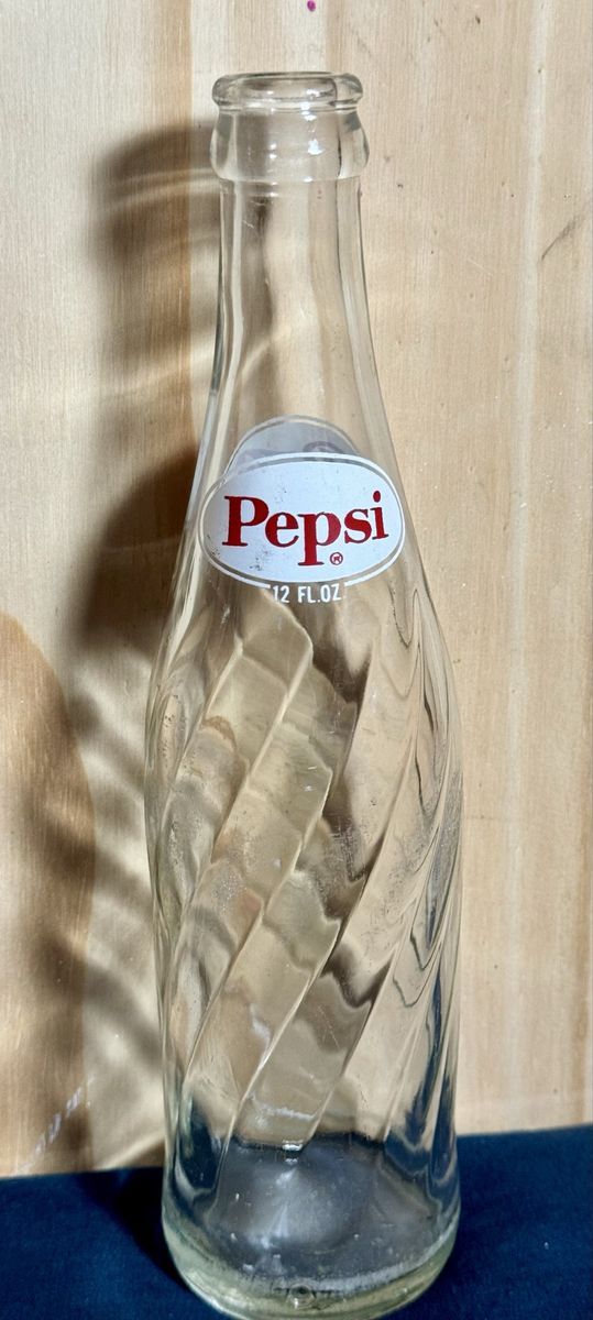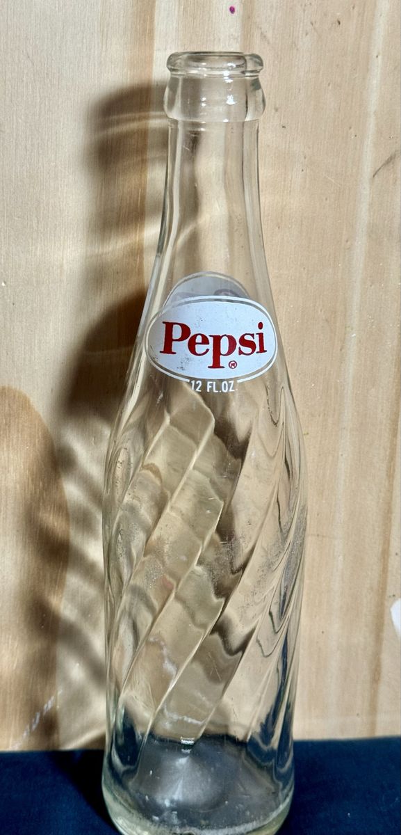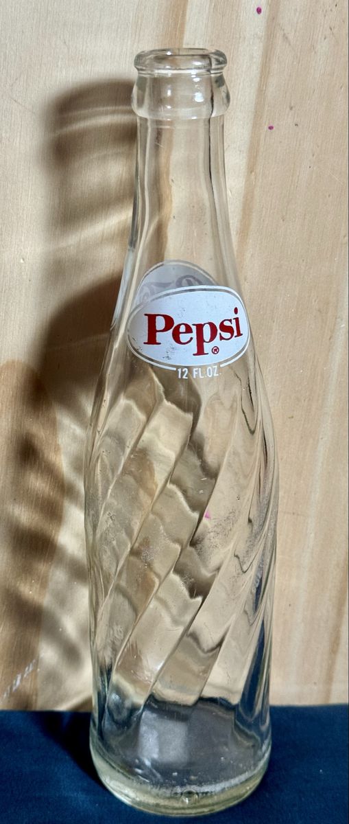 VenmoVintage Pepsi-Cola soda bottle, specifically $6 featuring a distinct swirled or spiral glass design.