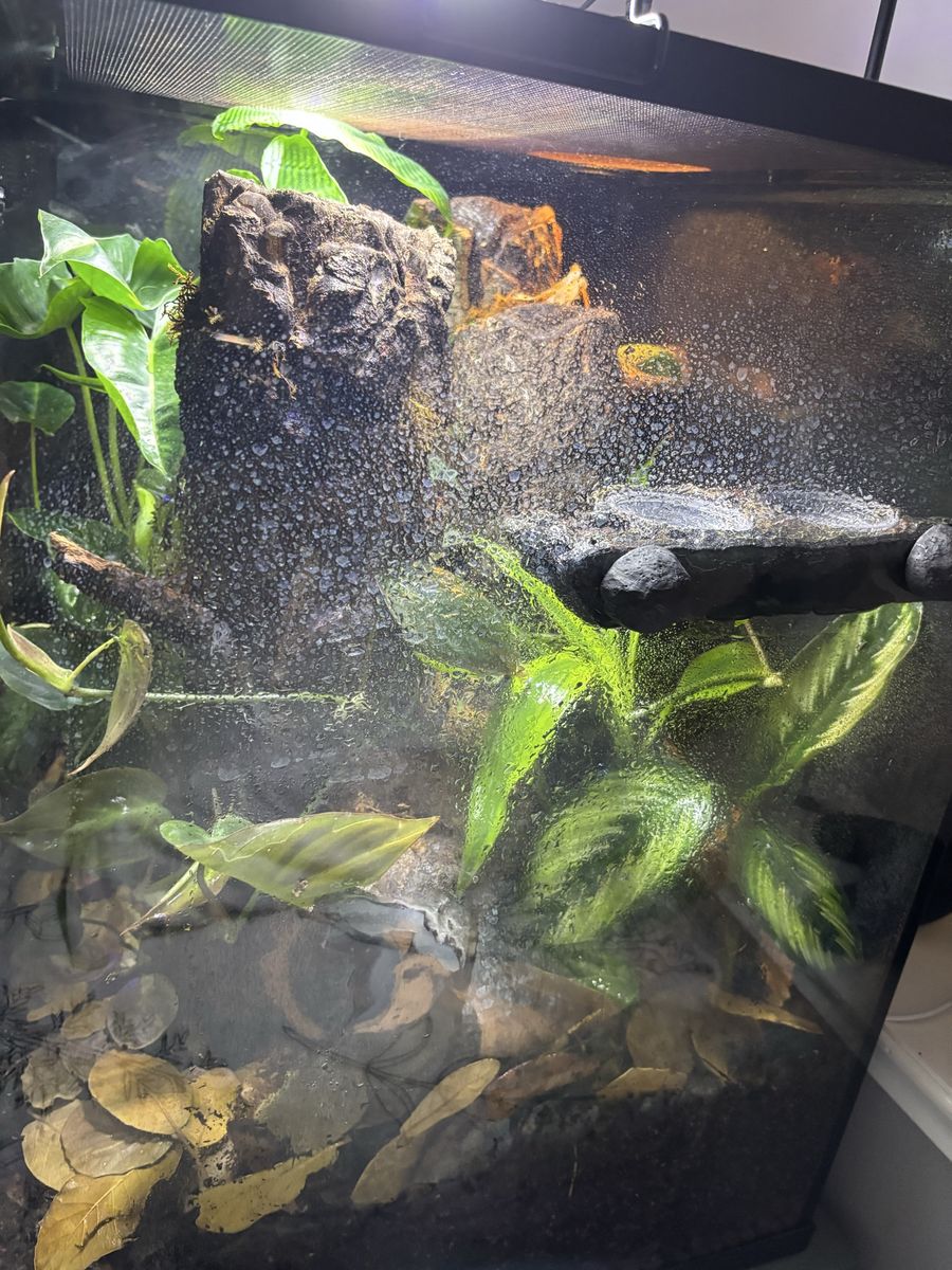 I have 1 single female clown tree frog in this 18 by 18 by 24 inch tank.