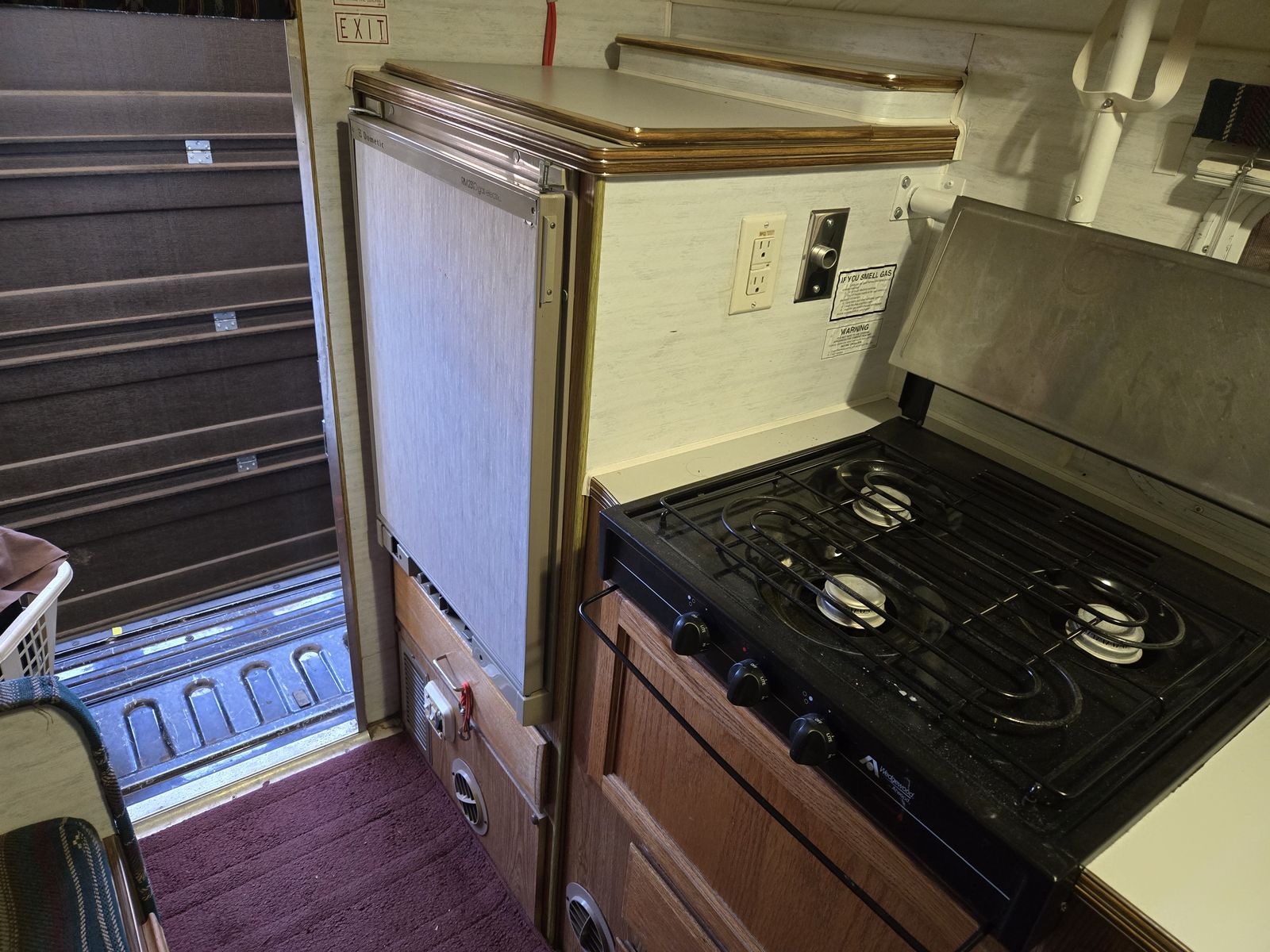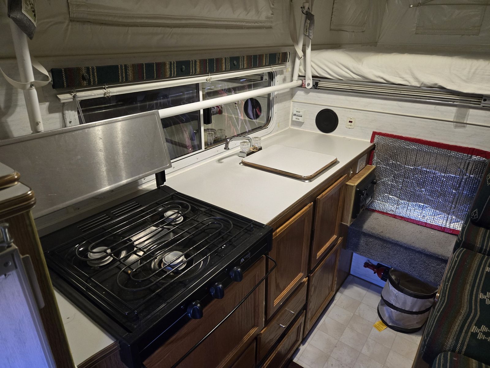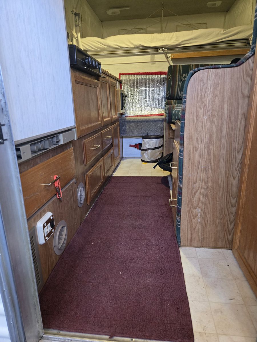 Good shape sleeps 3-4 depending, 3 way frig, gas stove top, hot water.