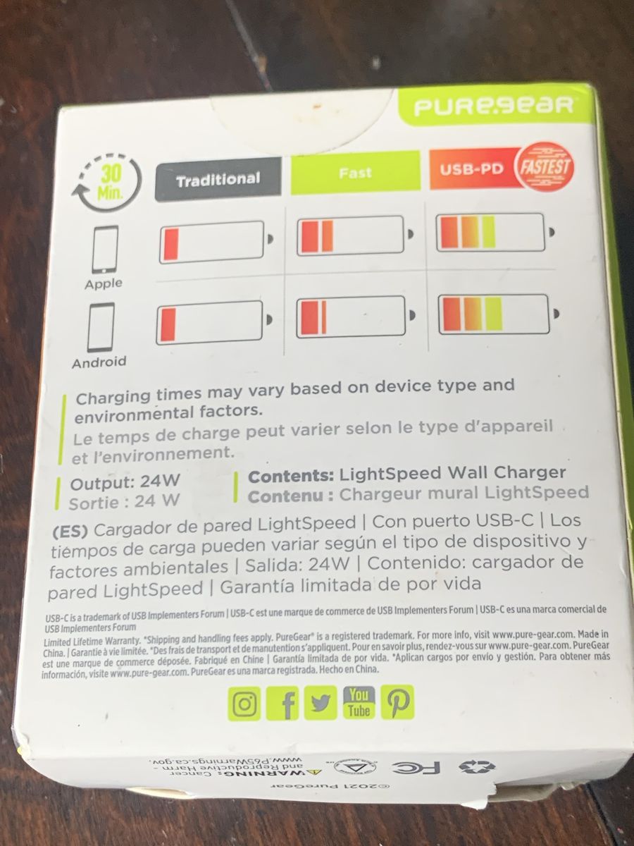 Puregear light speed wall charger usb-c port, 24w, fast charger