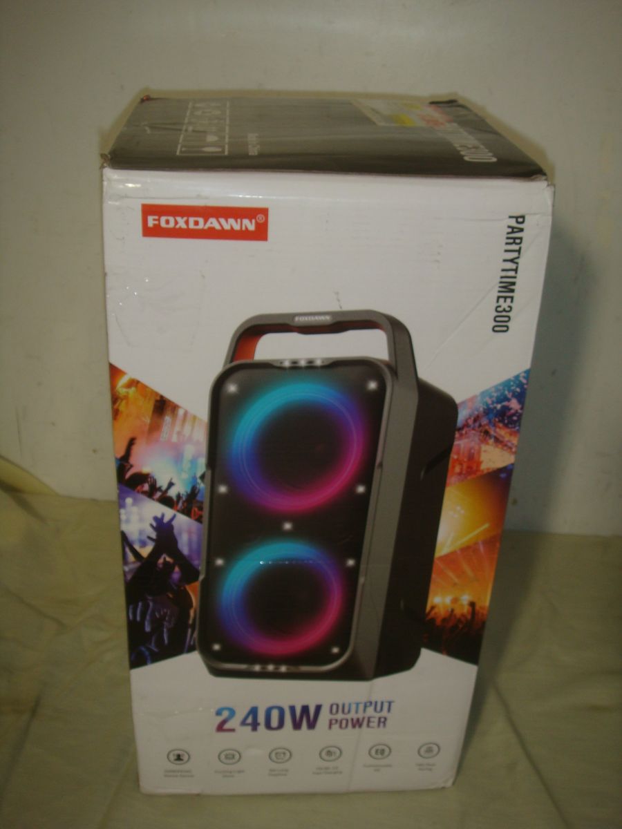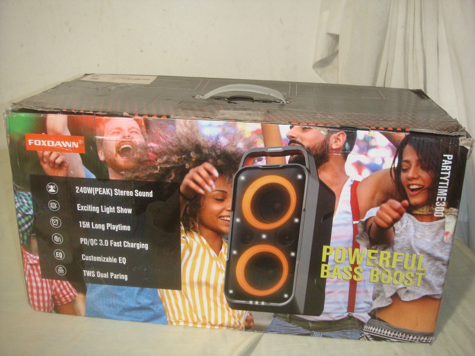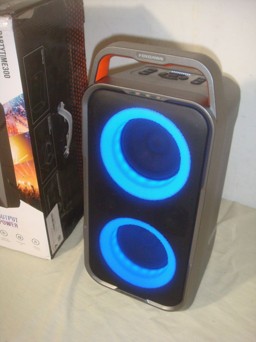 FOXDAWN PARTYTIME 300 PT300 PORTABLE BLUETOOTH WIRELESS BOOMBOX. This is a brand new, open box Bluetooth Party Speaker/Boombox. It was only opened for the photos and to be tested prior to being sold. It comes with everything shown. These are normally $170. This is your chance to save big-time so don't miss out!!