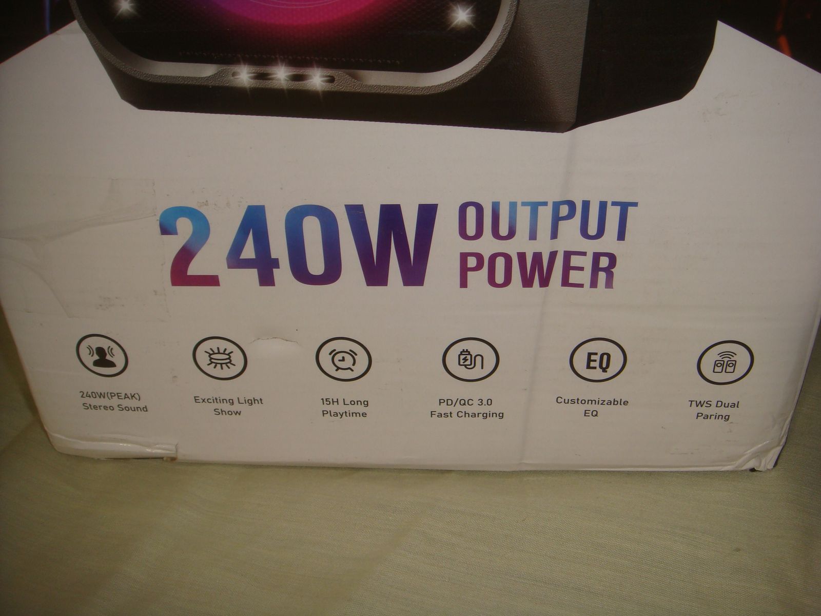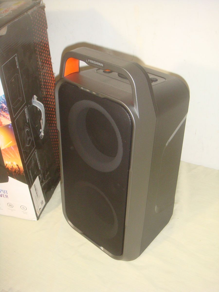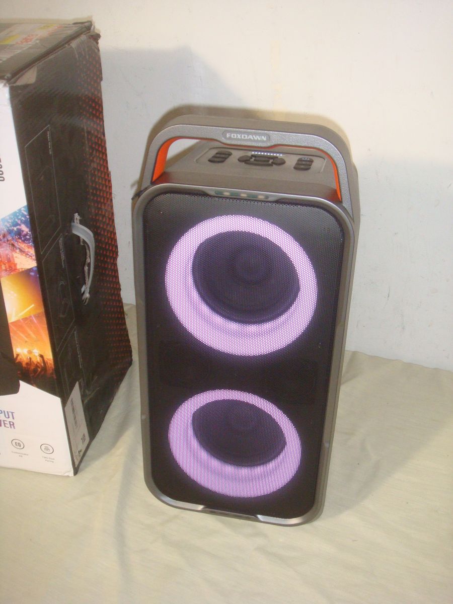 FOXDAWN PARTYTIME 300 PT300 PORTABLE BLUETOOTH WIRELESS BOOMBOX. This is a brand new, open box Bluetooth Party Speaker/Boombox. It was only opened for the photos and to be tested prior to being sold. It comes with everything shown. These are normally $170. This is your chance to save big-time so don't miss out!!