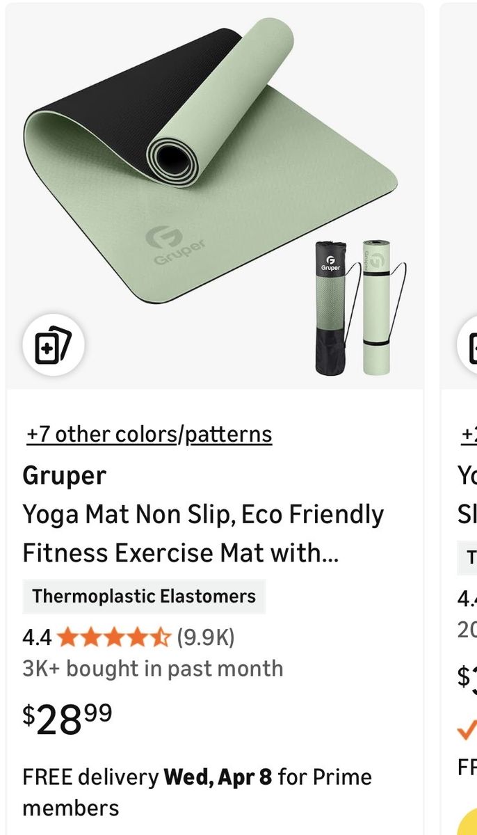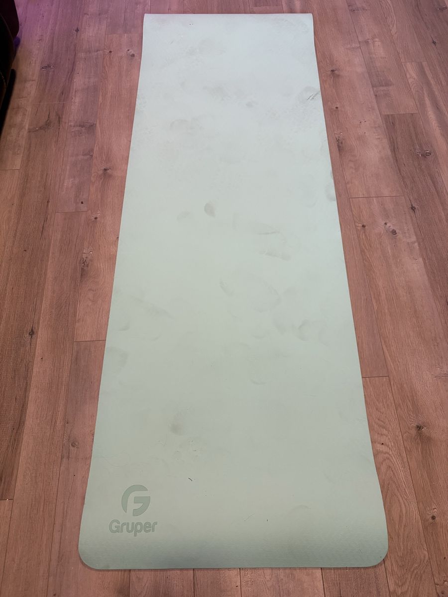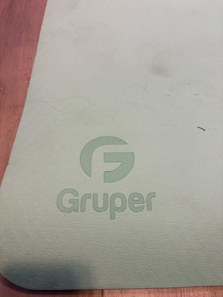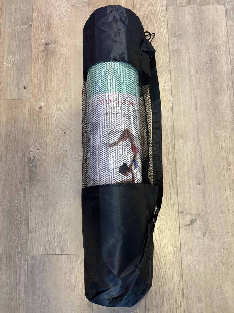 ZelleThis is a Gruper Yoga mat. The mat is 1/4 inch thick with a nice sea foam green color on one side, and a durable black side that goes on the floor. It comes with the carrying bag you see that has a draw string and friction grip toggle to keep the mat secure in the bag. I have 6 that have never been used, 5 in a never been opened box, all still plastic wrapped, and one with an open box but still plastic wrapped. The one picture laid out on the floor is mine and my wife’s personal mat. I used it so I didn’t have to unwrap a new mat. As you can see these mats are $28 on Amazon, but we have them for $20 each. Cash is preferred method of payment but others stated are welcome.