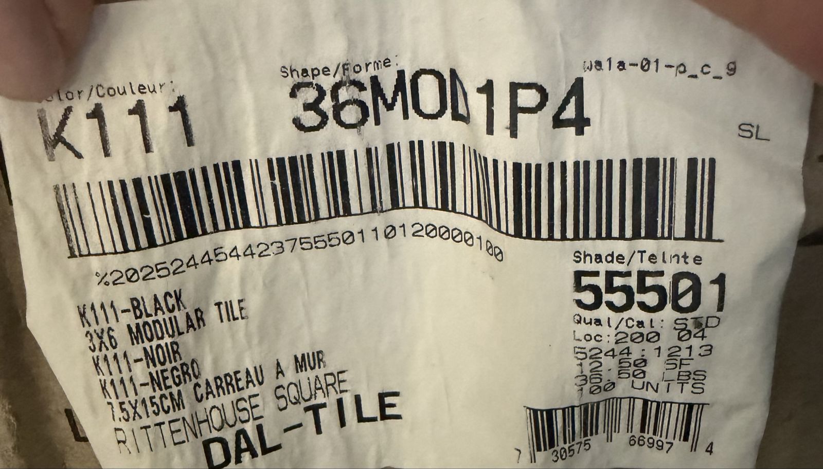 Tile: 3x6 Case Size: 12.5 sq. ft. Condition: New, left over from project