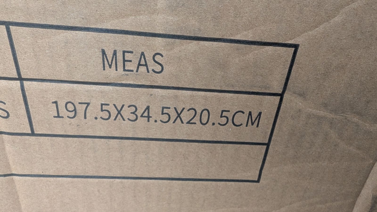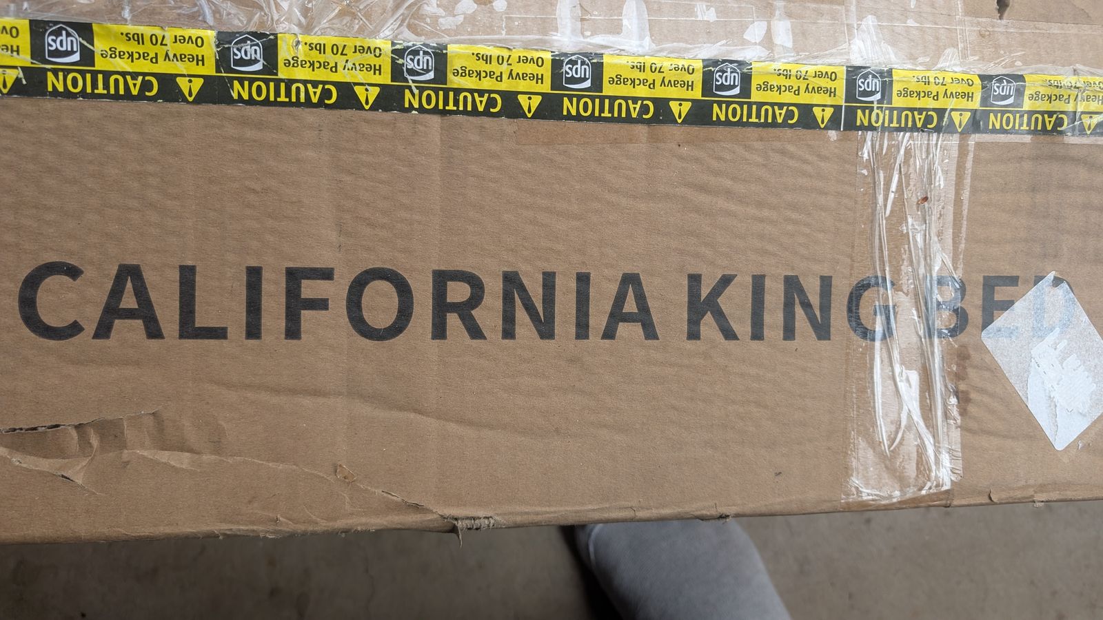 See all pictures. New in box. Smoke free home. California King Bed Frame. You will get item shown in pictures. You will need a truck to pick this up. It's large/oversized in box.