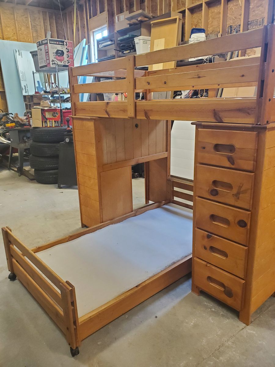 VenmoGreat kids bedroom set. ould use a new paint job but hey, all the higher priced beds on here could use one too. All wood structuraly in very sound condition. Call me to come and pick it up. (801)599-1637. No I will not ship.