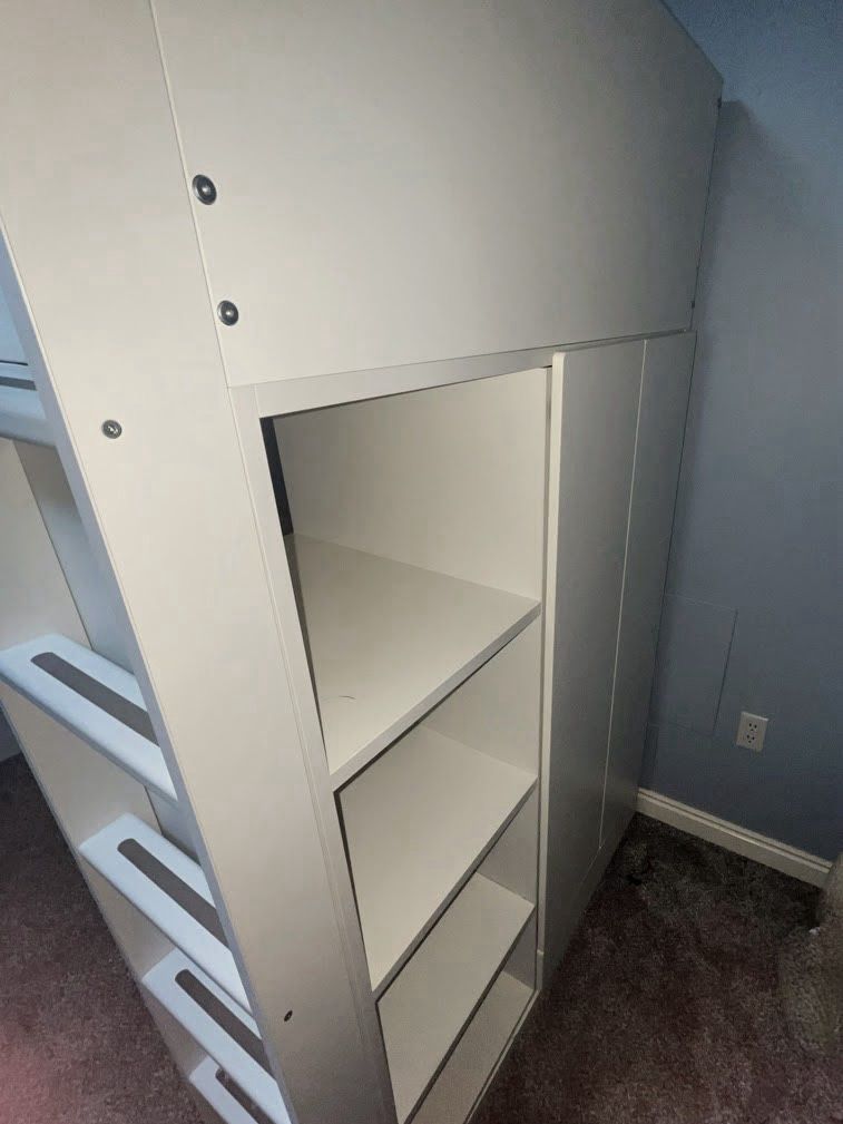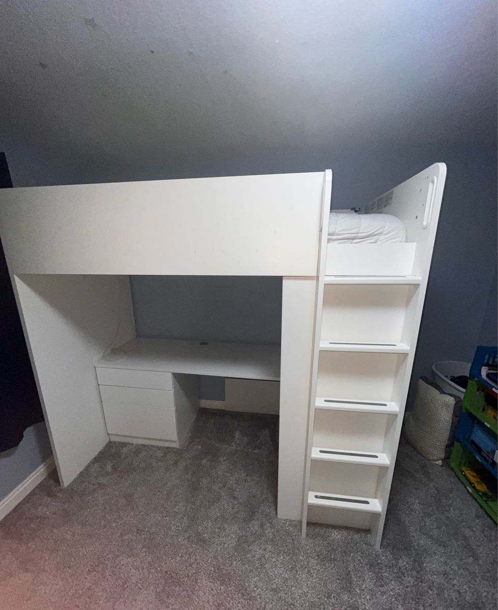 GooglePayA few years old, gently used. Instead of a bottom bunk, it has a desk. It also has a few bookshelves, 3 drawers, and a closet. I left it assembled for you to see how it goes together. Gone take it apart and haul it away!