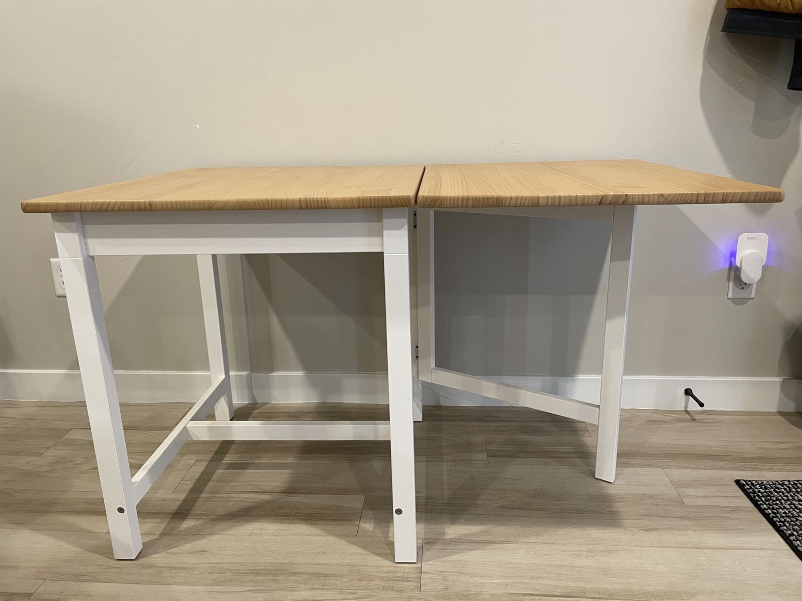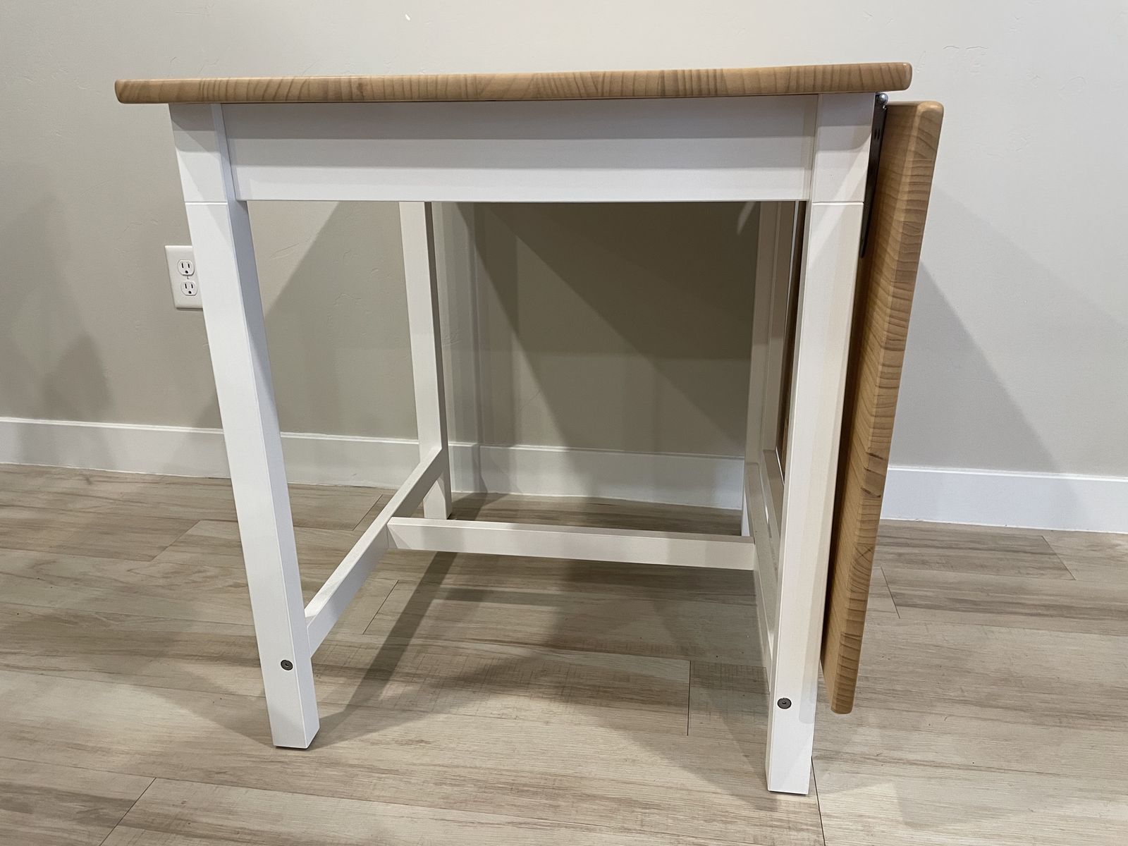 The table is a PINNTORP Gateleg table from IKEA, part number 705.294.65