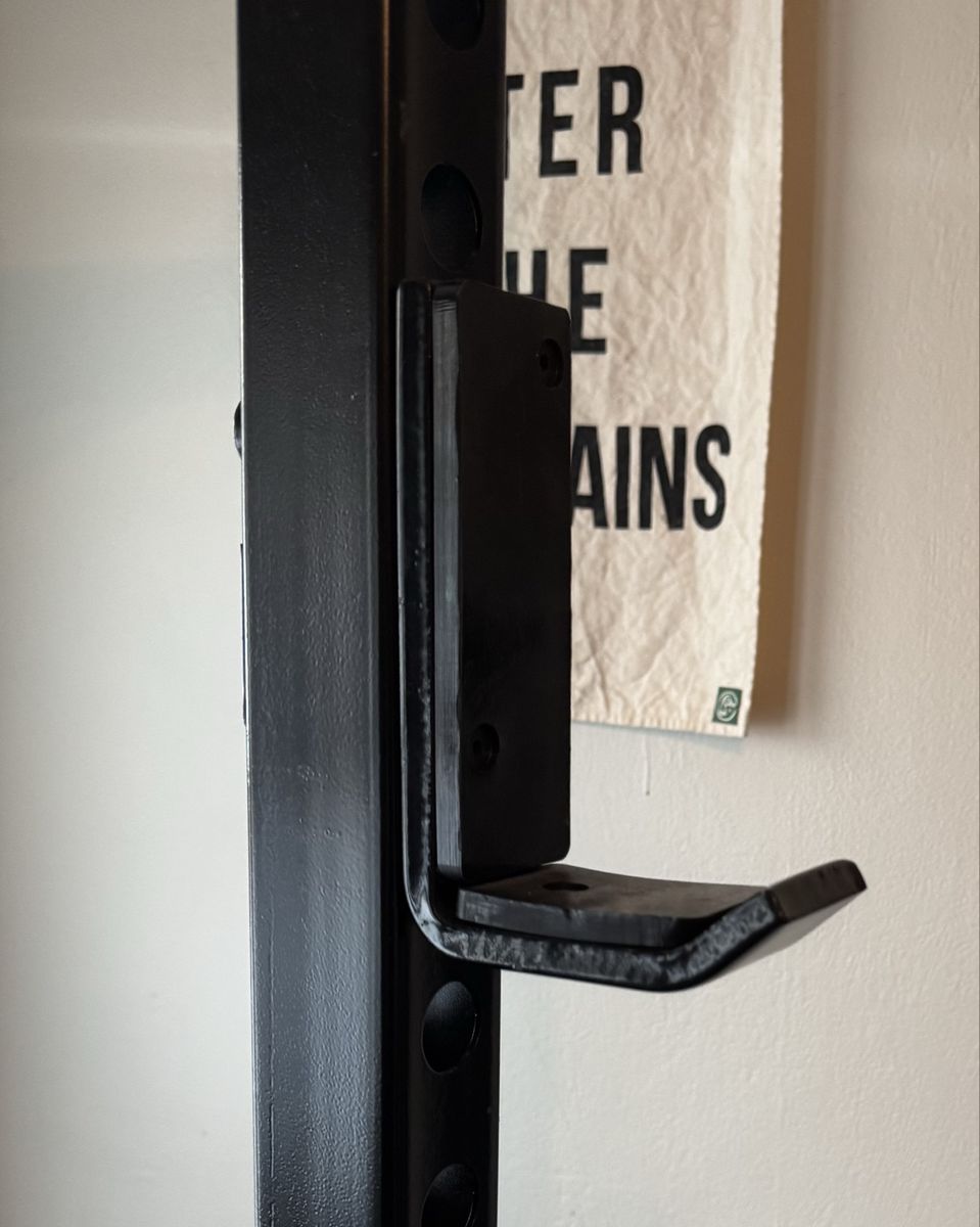 Includes: 4 J Hooks 2 Extended Safety Bars 2 Safety Spotter Extensions Pull Up Bar Base Weight Plate Storage *Does not include bench
