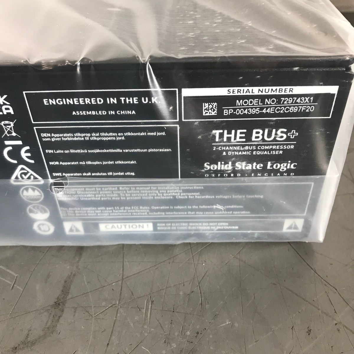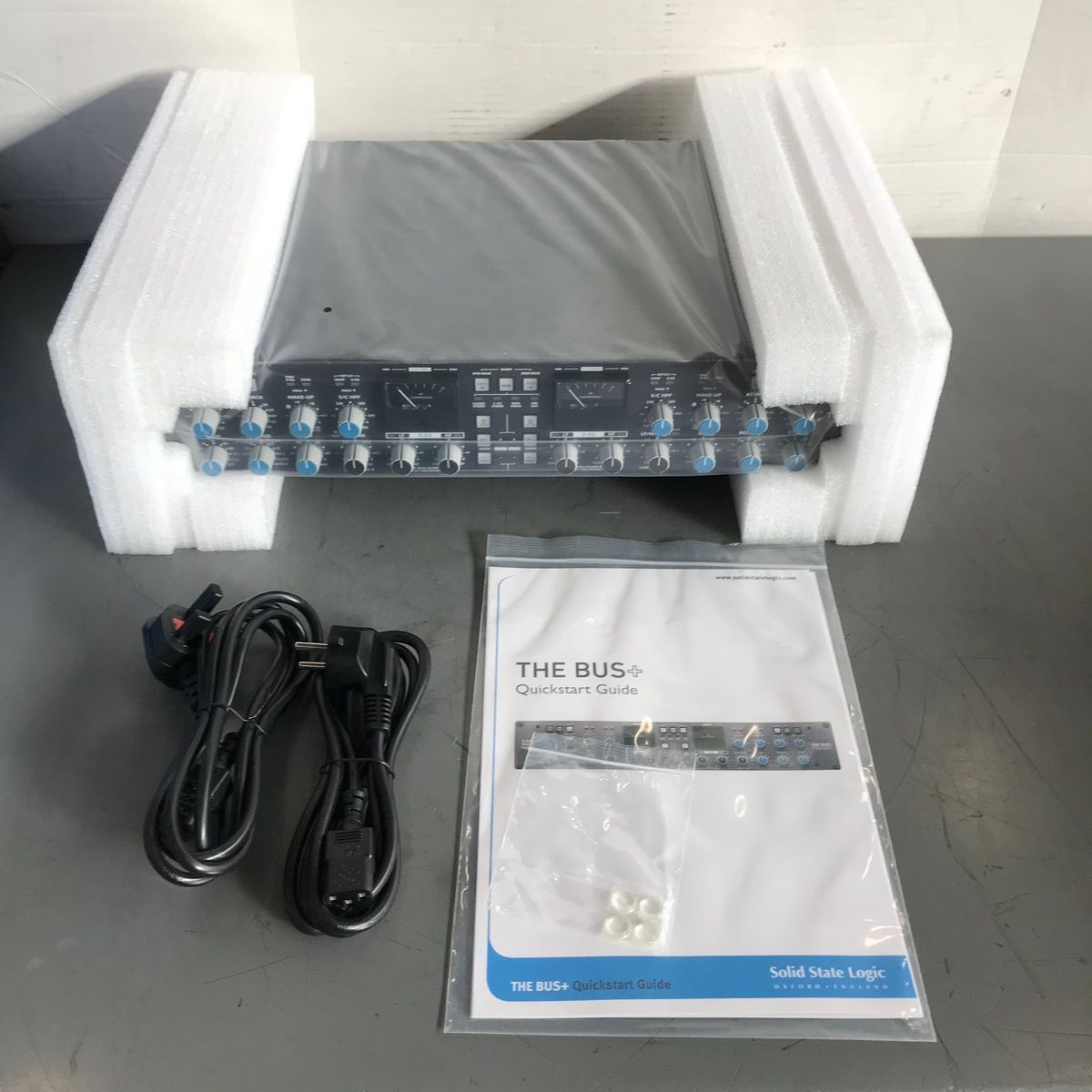BRAND NEW SOLID STATE LOGIC THE BUS+ 2 CHANNEL BUS COMPRESSOR. This is new, never used or removed from the sealed plastic. We did remove it from the original box just for the photos shown here. It is in new, perfect condition! It comes with everything shown. It does come with euro power cords so you might need a 2-prong adapter or just a common US power cord. These are normally $2500. This is your chance to save big-time so don't miss out!!