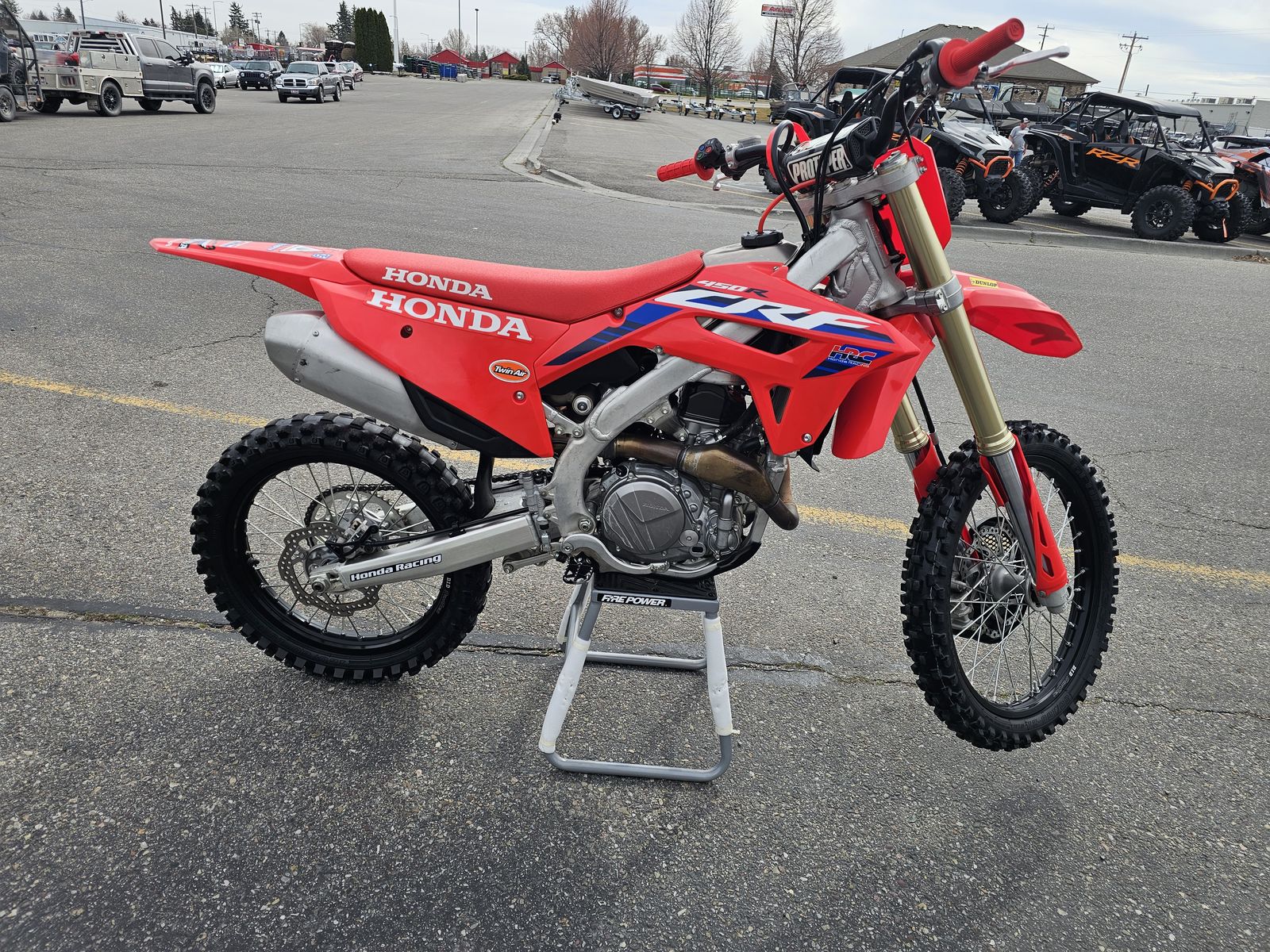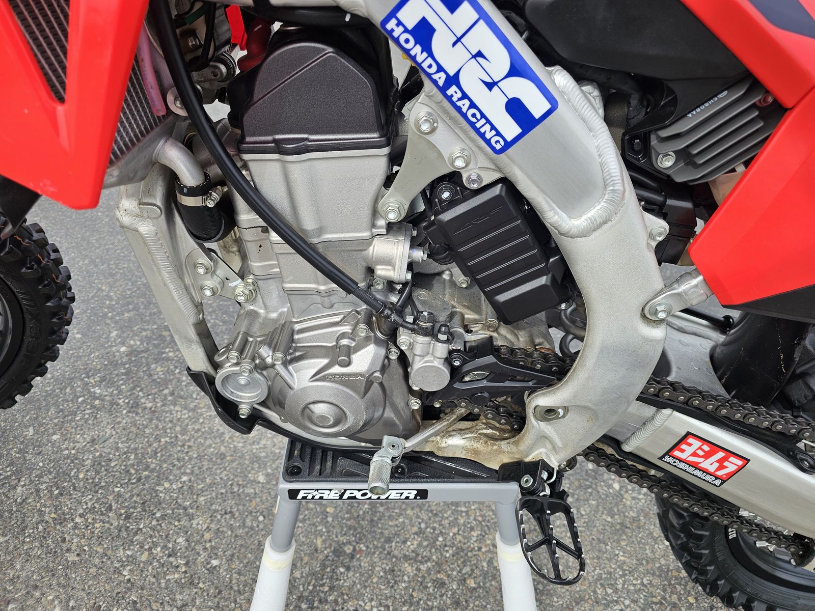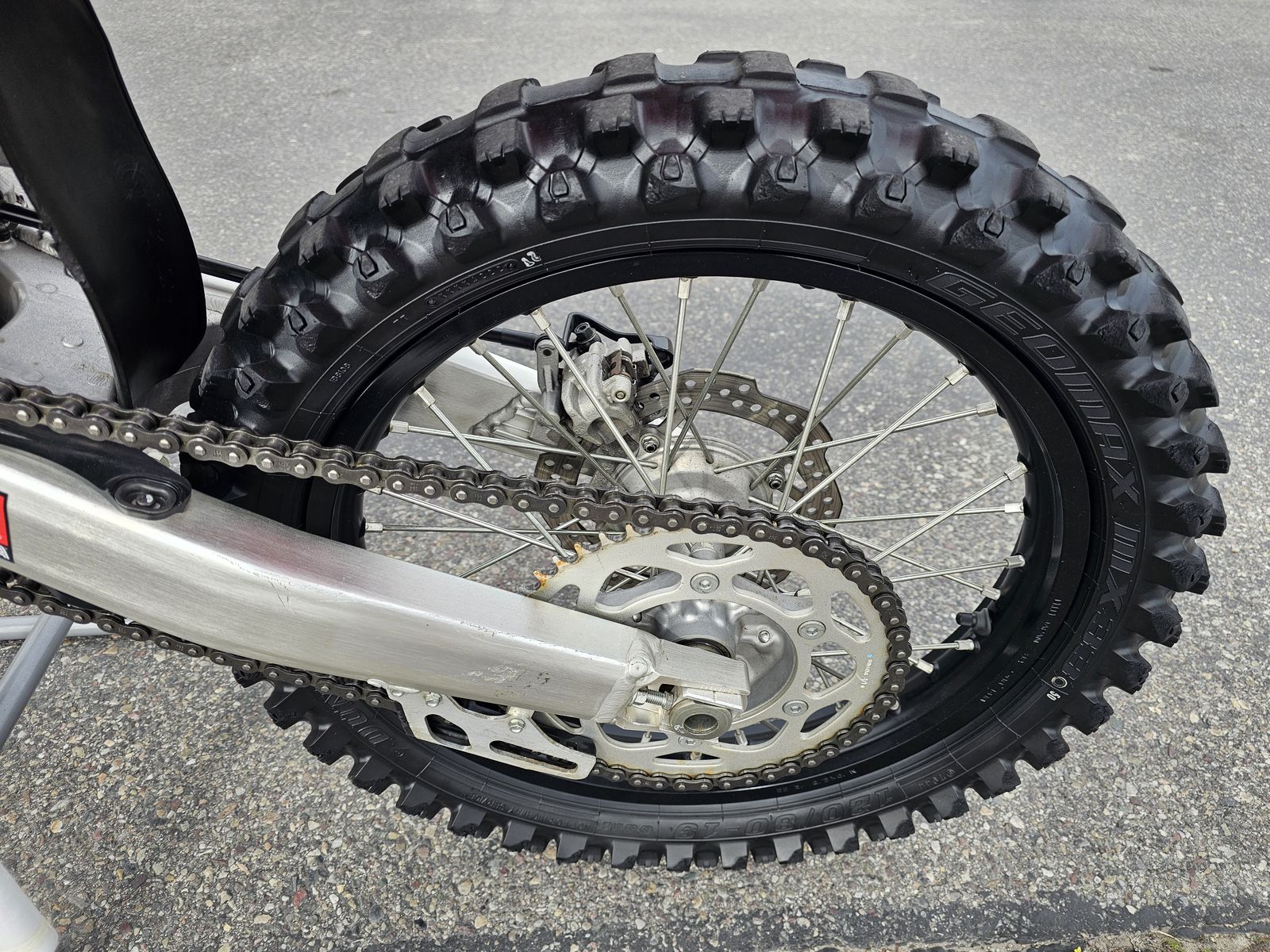 Pro-Link Showa single shock with adjustable spring preload, 11-position rebound and six-position high- and low-speed compression-damping adjustability