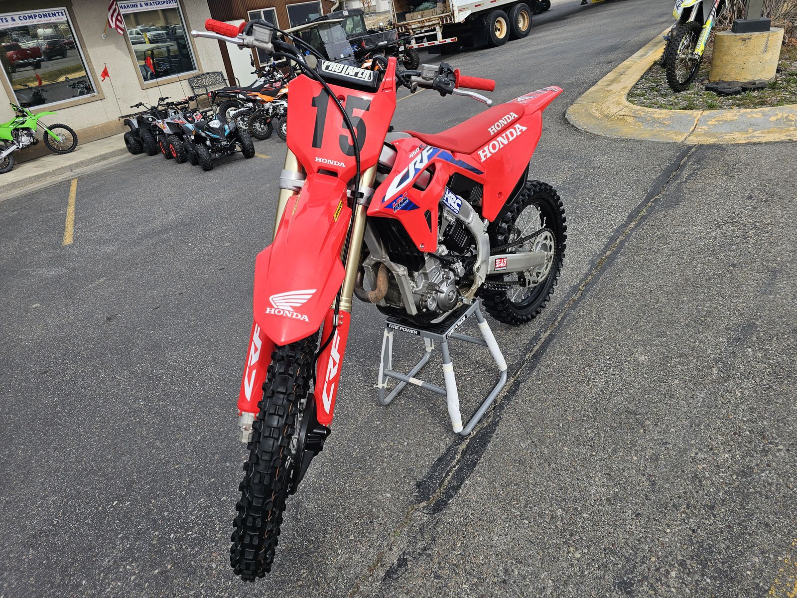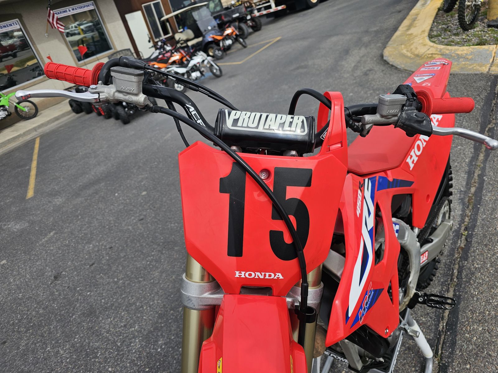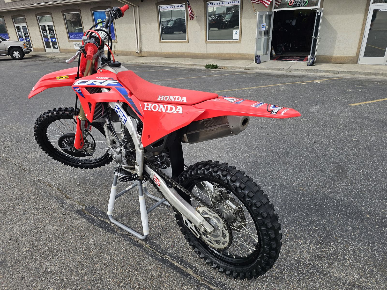 Pro-Link Showa single shock with adjustable spring preload, 11-position rebound and six-position high- and low-speed compression-damping adjustability