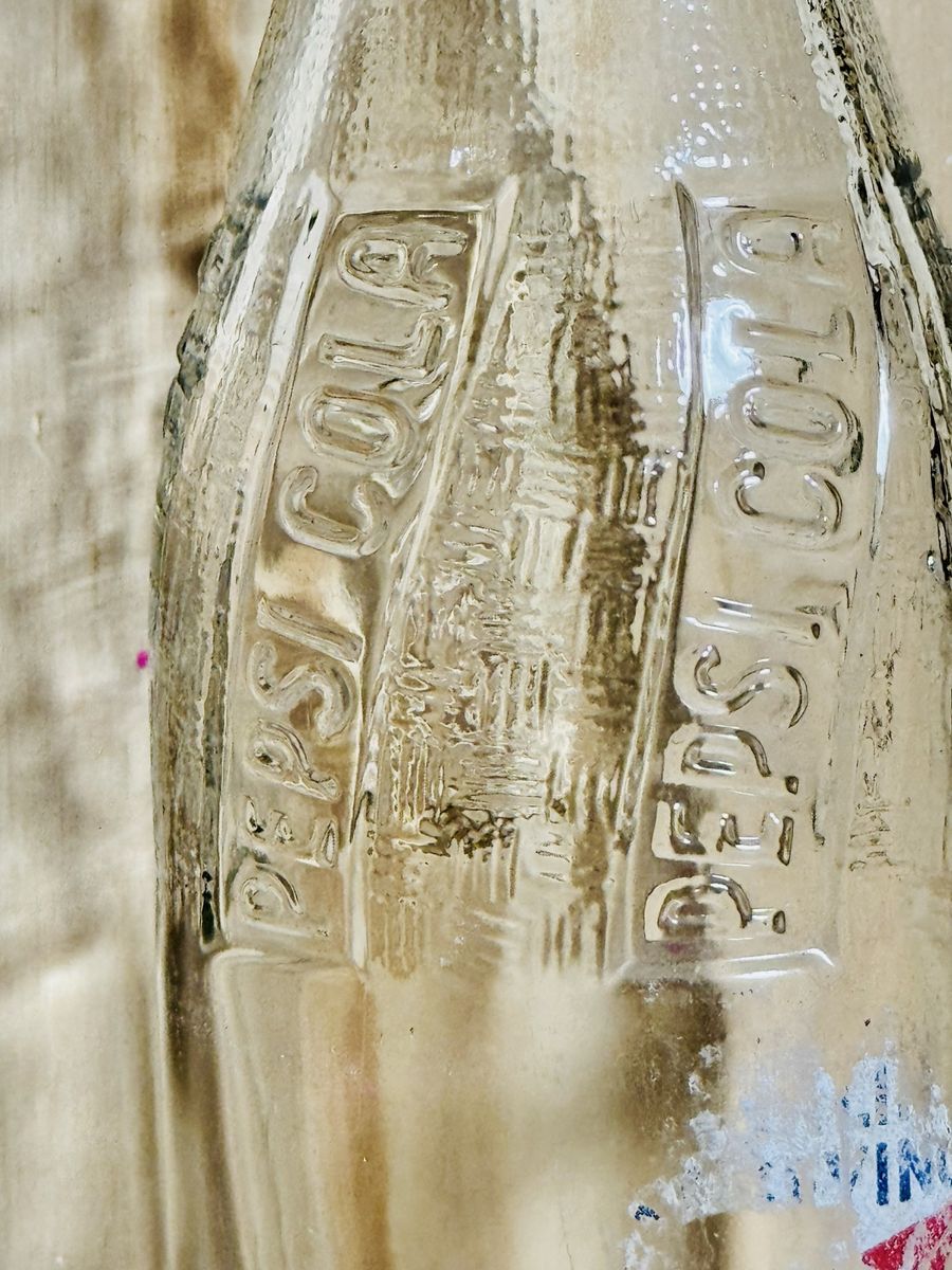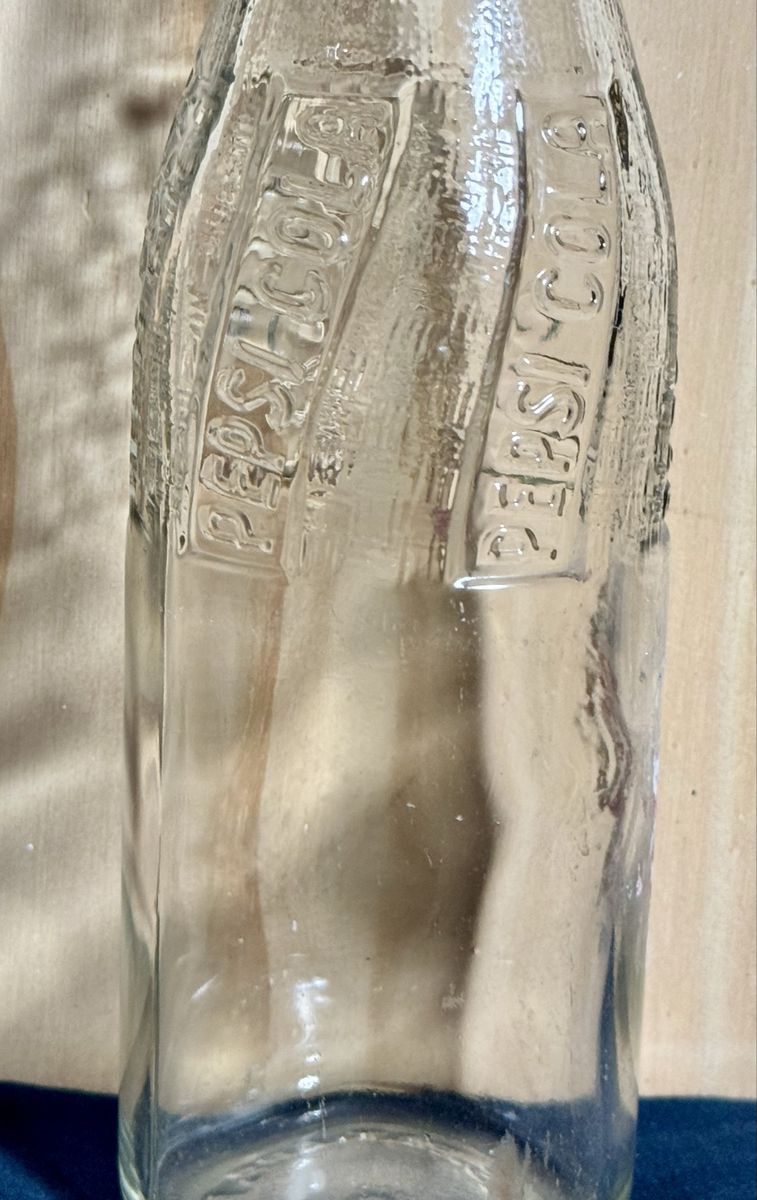 VenmoVintage, clear glass Pepsi-Cola soda bottle, likely dating from the 1940s to the 1950s