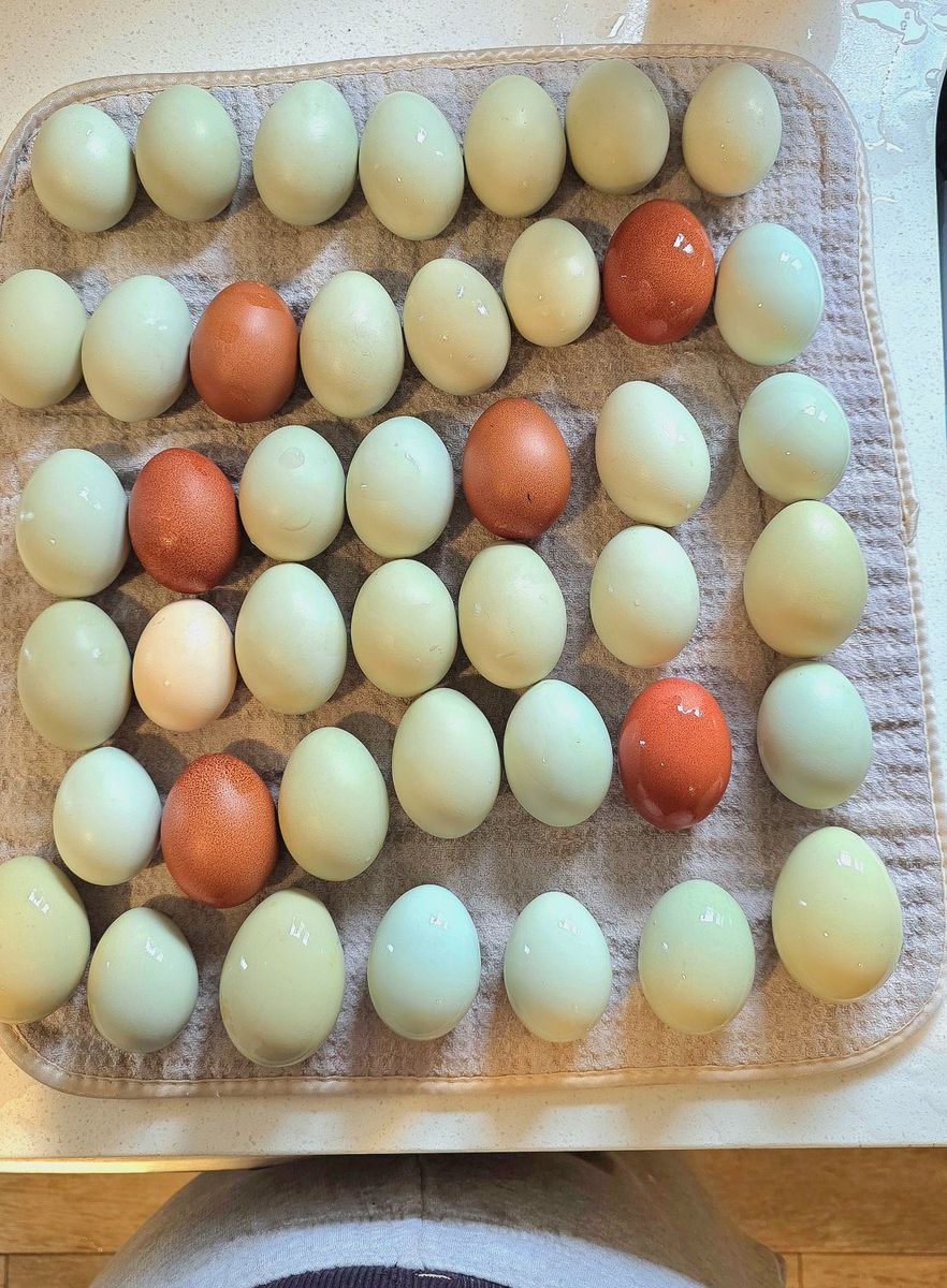 CashAppI have 14 chicks some are pure breed black copper marans and some barnyard mixed. My rooster is a black cooper maran. Some of the mixes will be with silkies, Easter eggers, olive eggers and cream leg bars. 10$ each all born on march 28th also added picture of my rooster and the eggs the hens have produced.