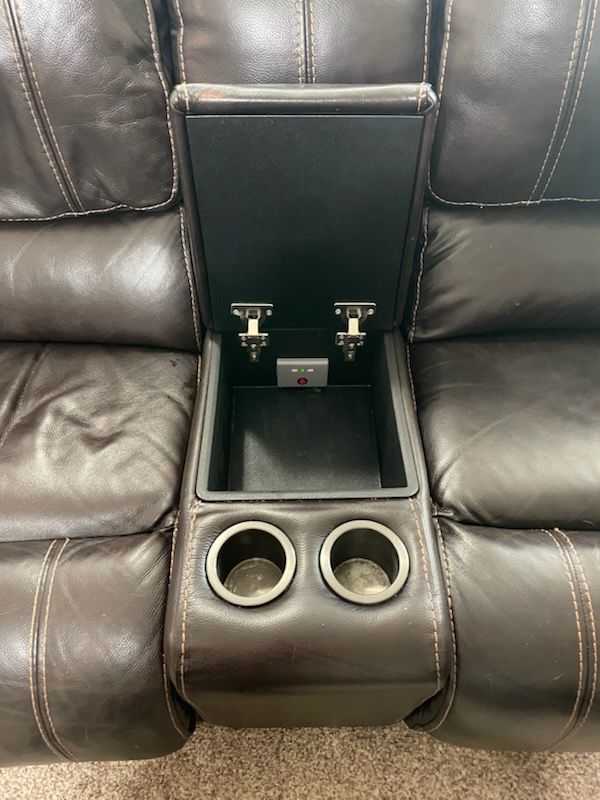 VenmoBeautiful dark brown top grain cowhide leather loveseat. It has two electric recliners that work perfectly and a middle console with storage and cup holders. Theres a minor stain on the console lid---overall it's in very good condition. Please text if you are interested.