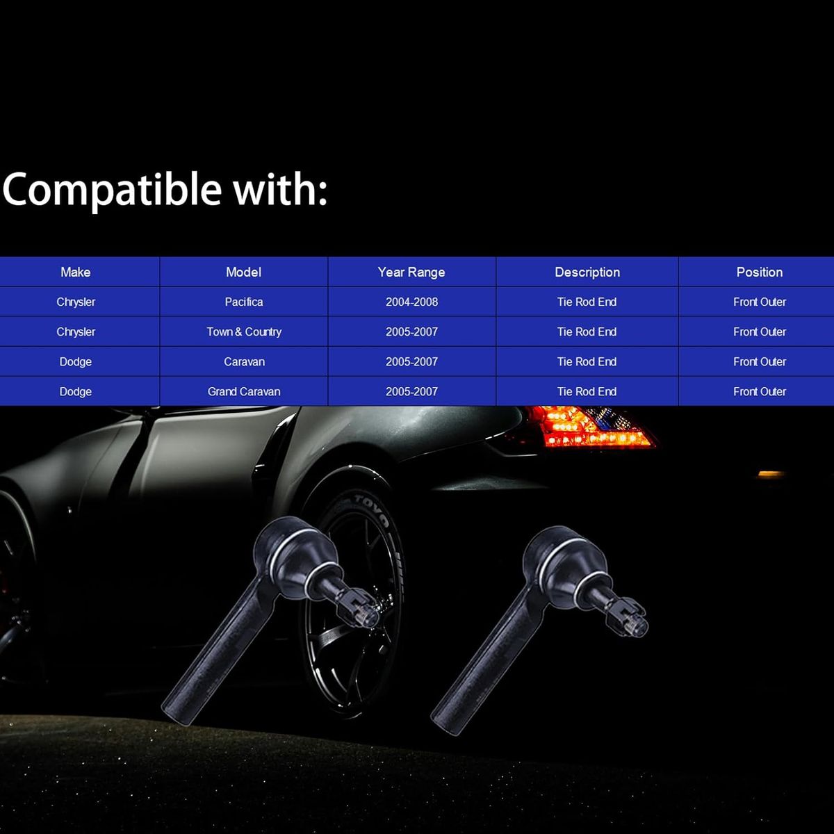 ApplePay2 Pack ES3614 Front Outer Tie Rod End Fits for Dodge Caravan 2005-2007, Grand Caravan 2005-2007, Outer Tie Rod End Fits for Chrysler Pacifica 2004-2008, Town & Country 2005-2007, Steering Tie Rod End